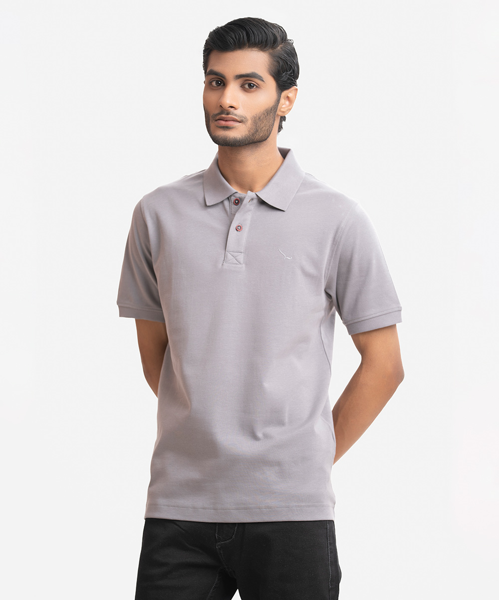 Gray Interlock Knit Polo