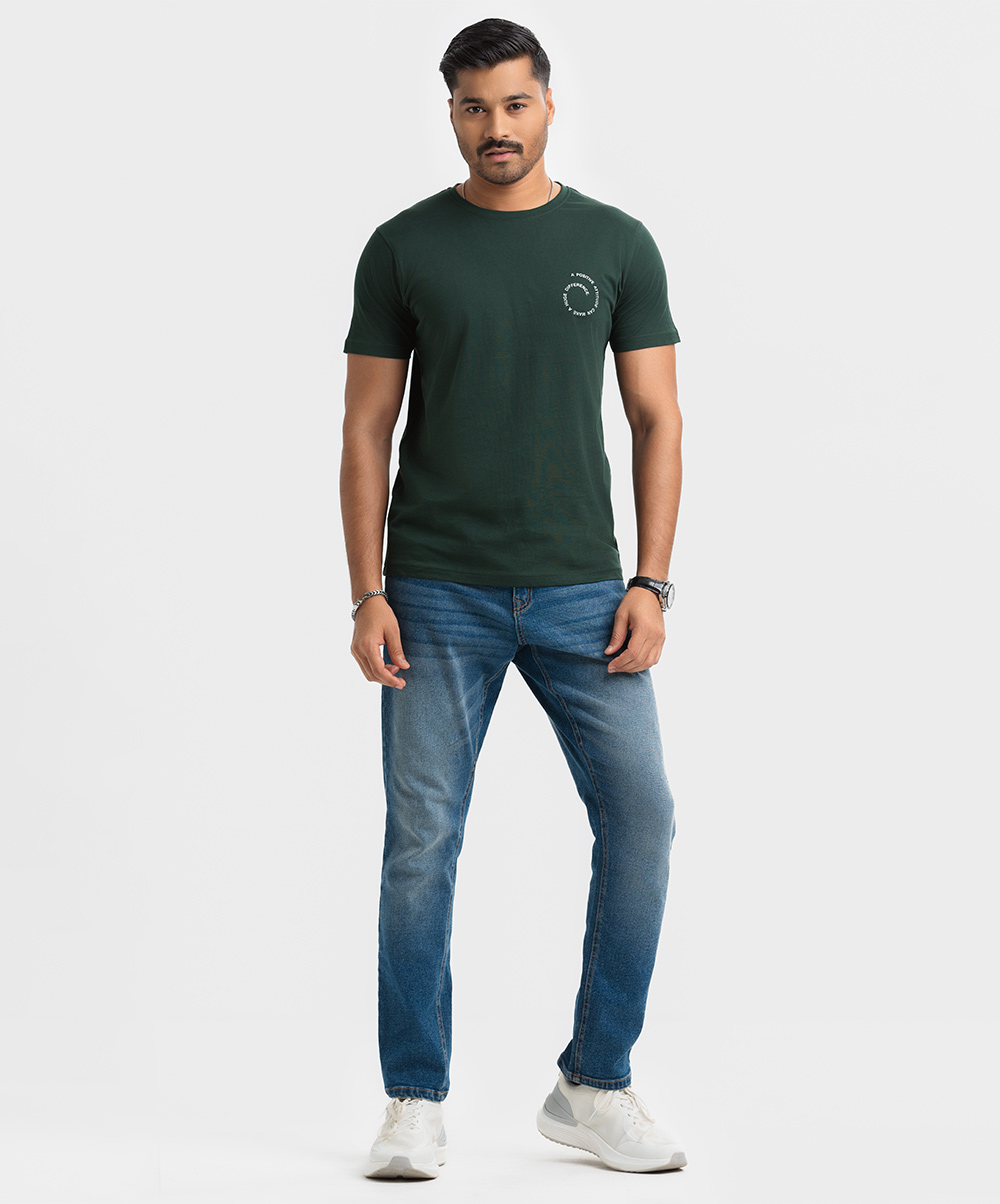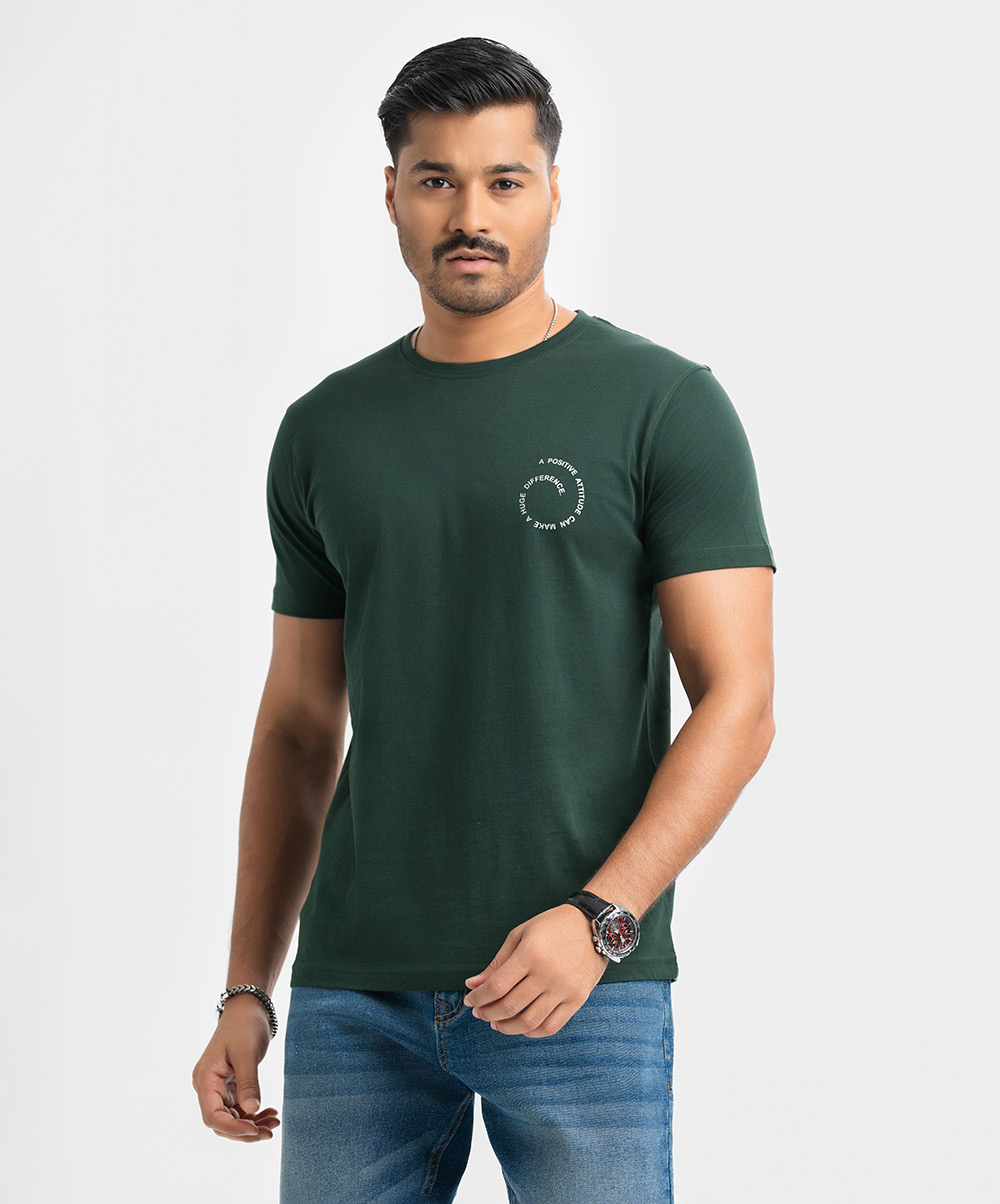 Men’s round neck T-shirt in cotton single jersey knit fabrics and short sleeves.