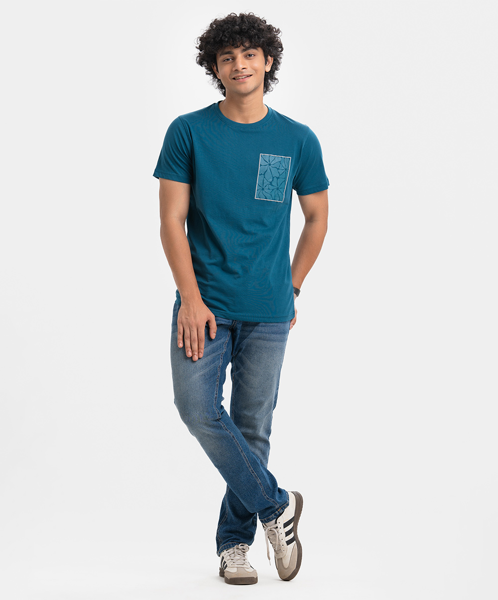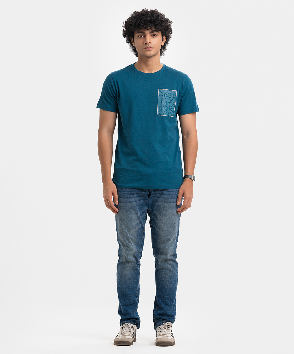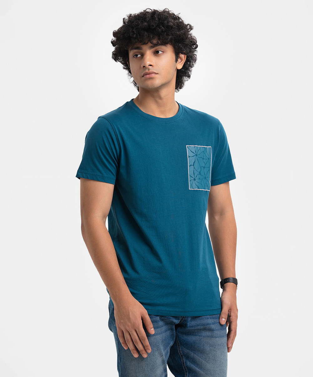 Men’s t-shirt in cotton single jersey fabric. Crew neck, short sleeves. Print details on the chest.