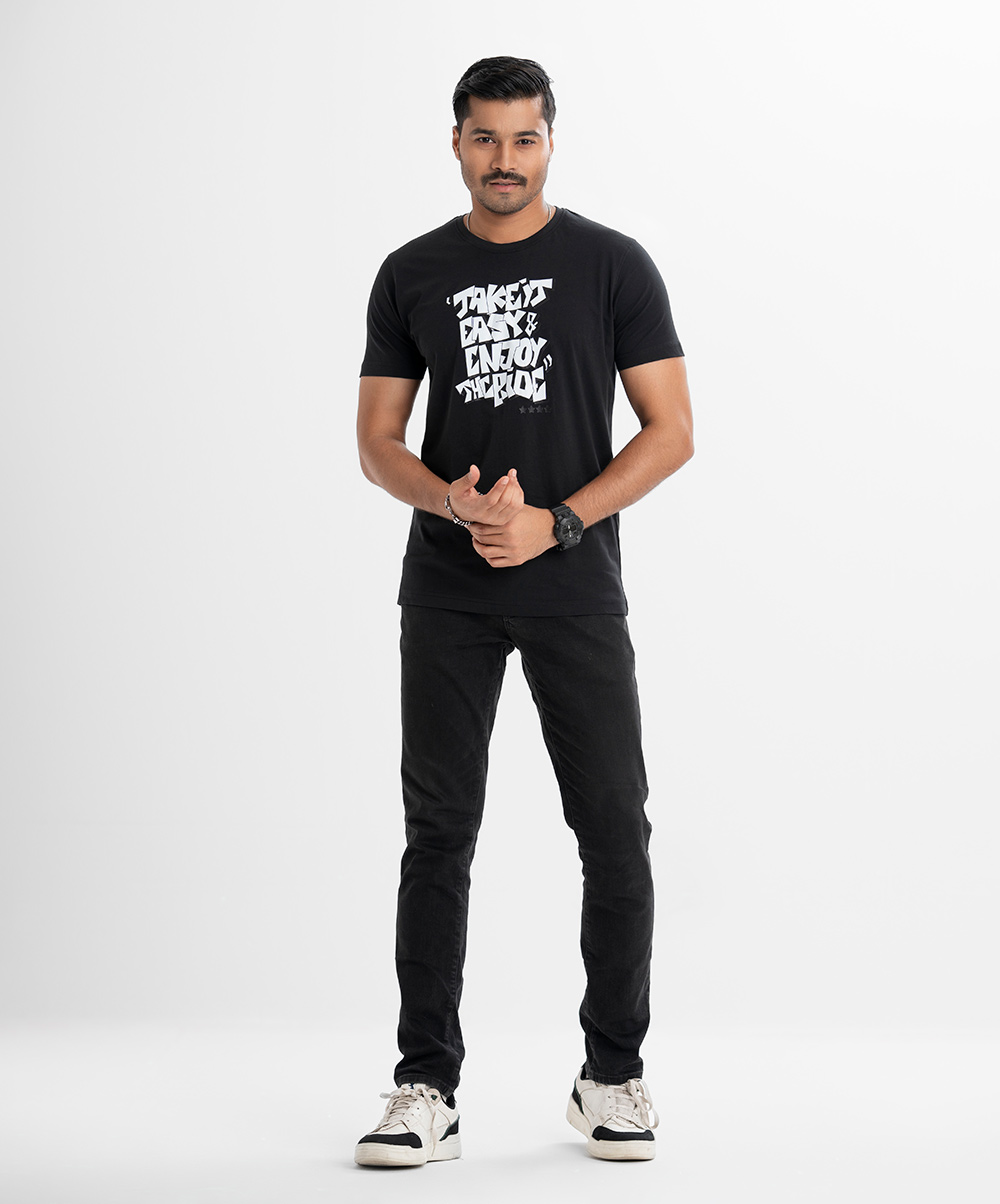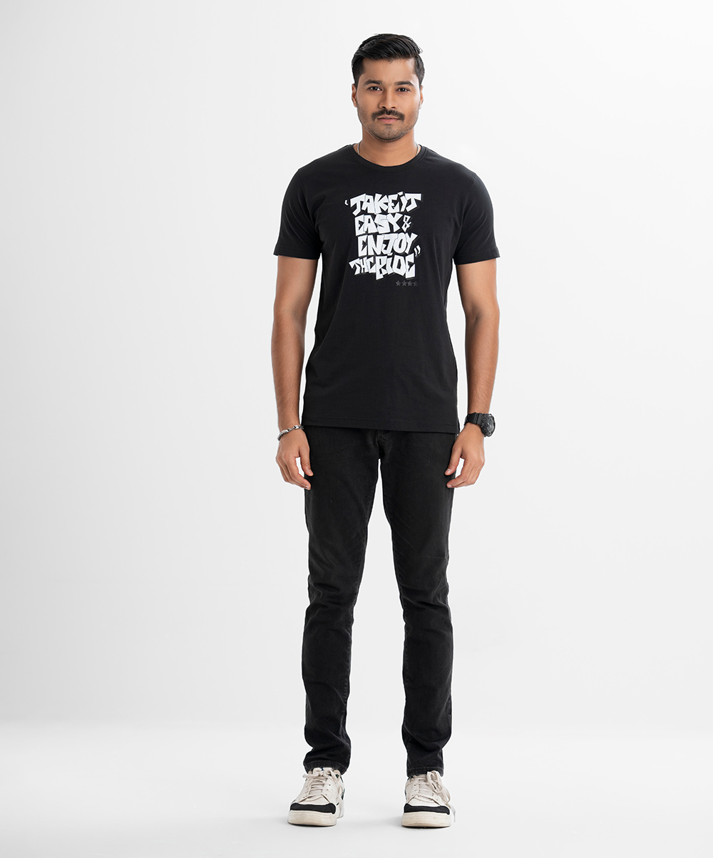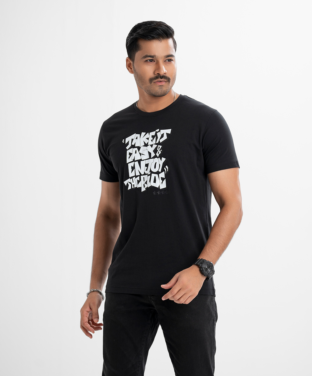 Men’s short-sleeved t-shirt in cotton single jersey knit fabric. Round neck and typography on the chest.