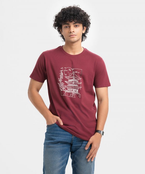 Maroon Cotton Short Sleeve T-shirt