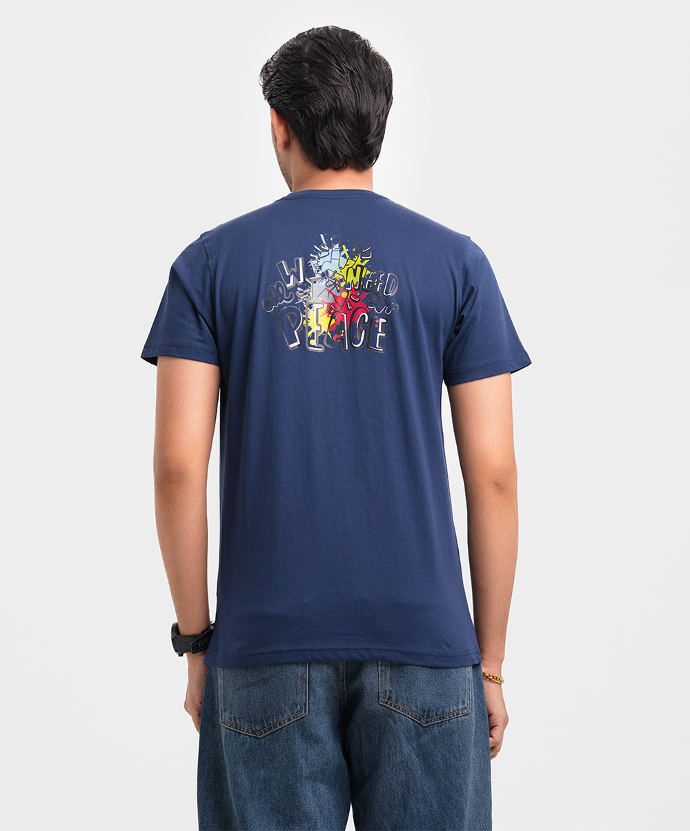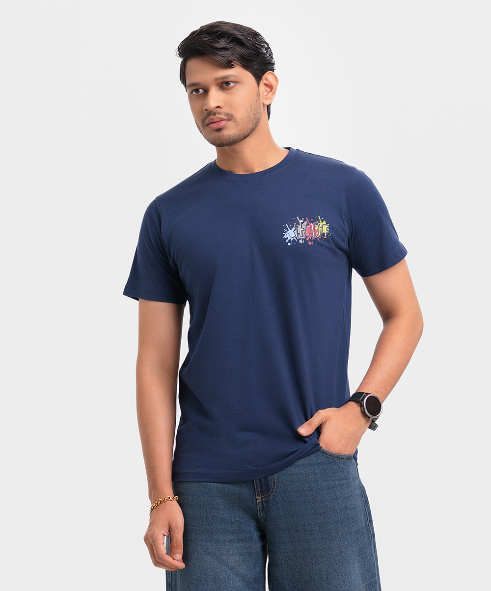 Men’s t-shirt in stretchable cotton single jersey fabric. Crew neck, short sleeves. Print details at front.