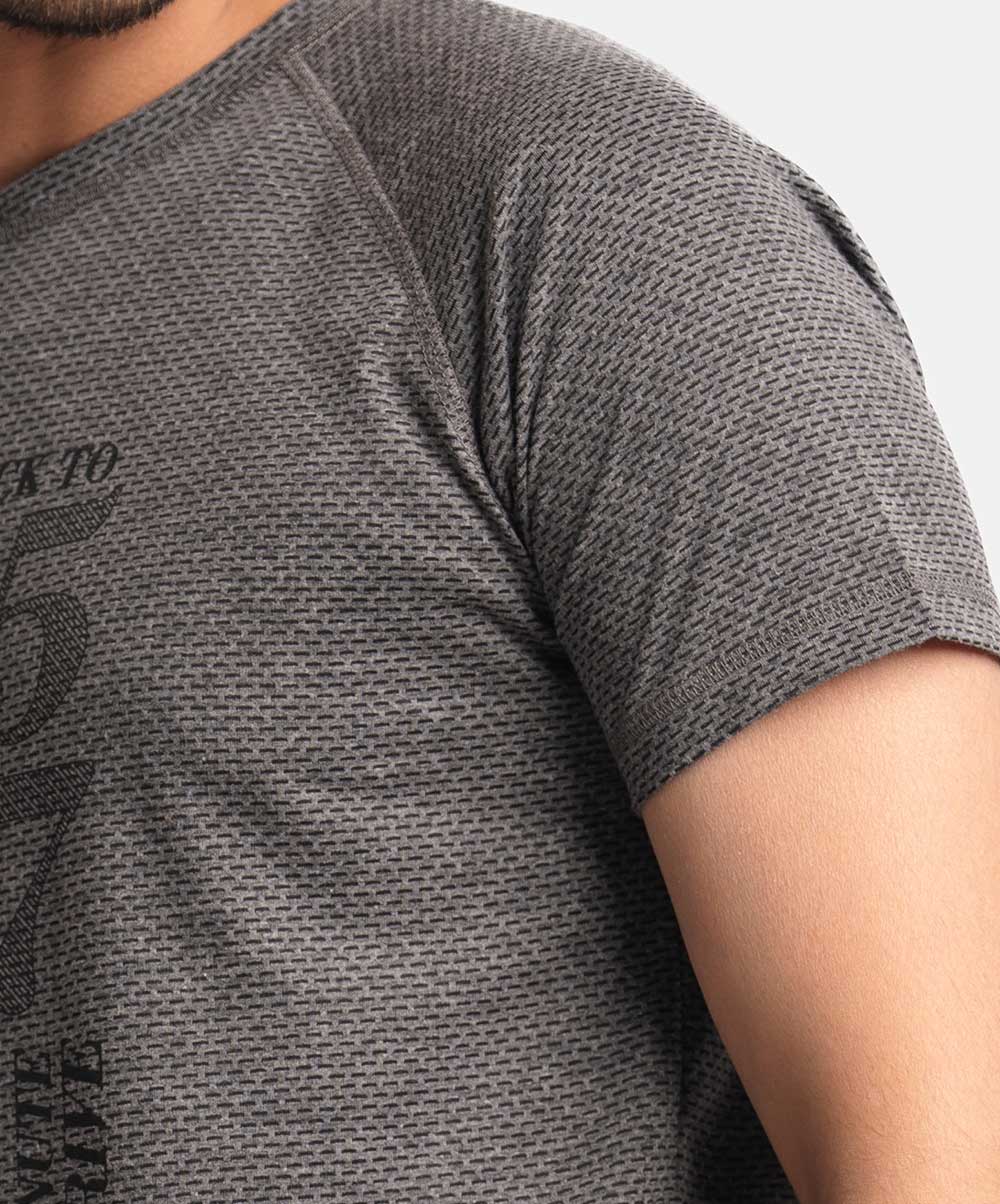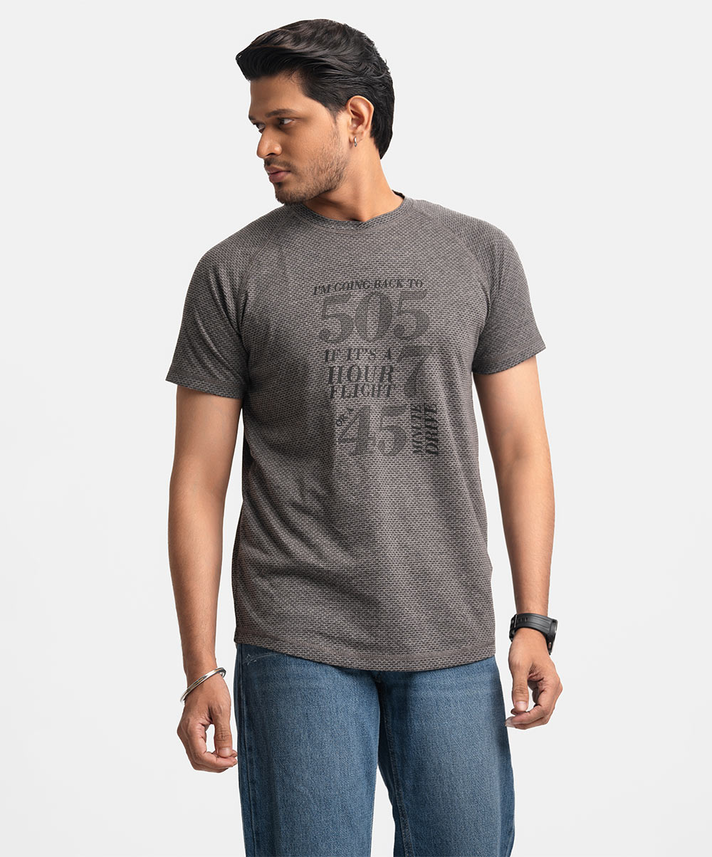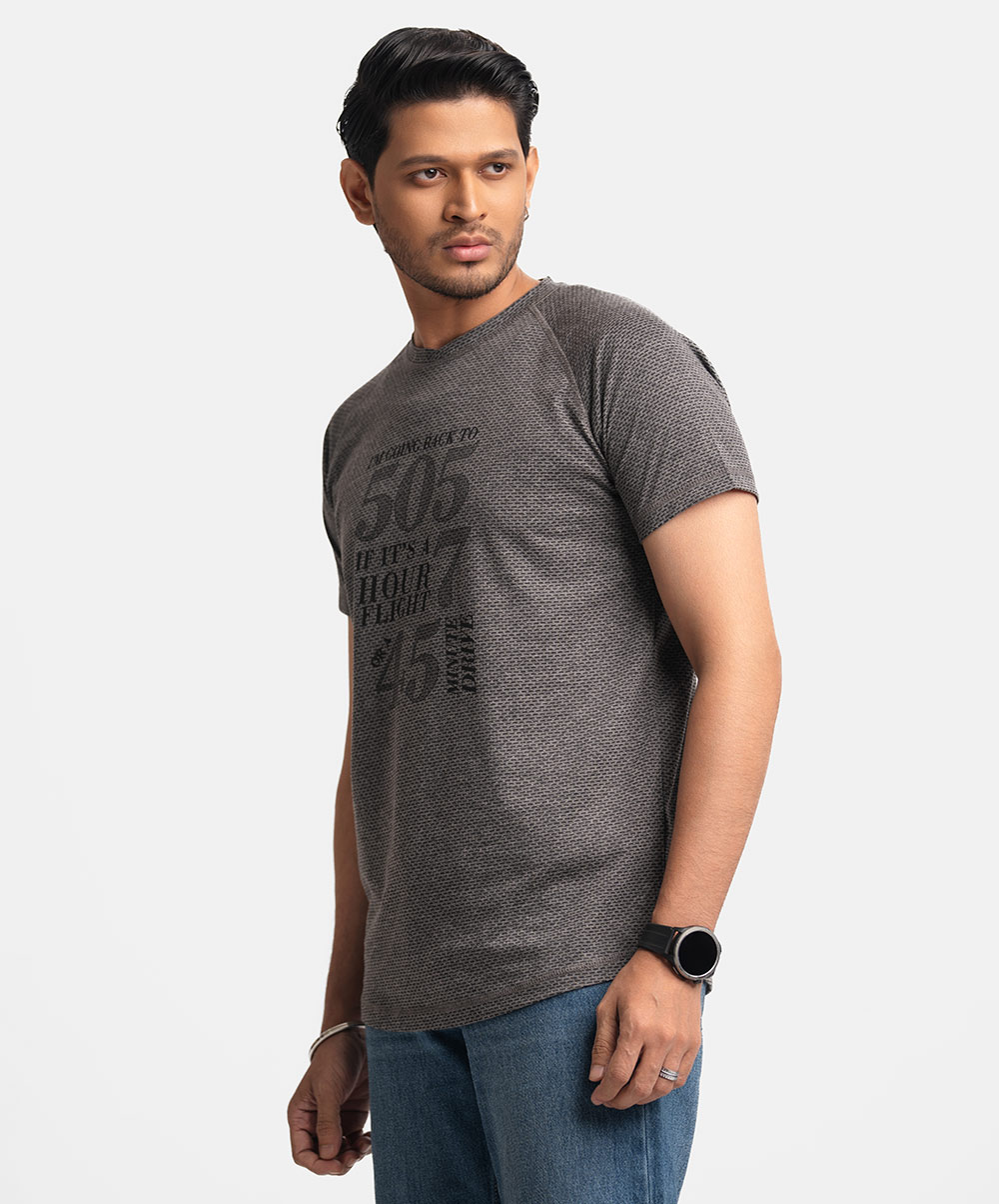 Men’s t-shirt in stretchable cotton knit fabric. Crew neck, raglan sleeves. Print details at front.