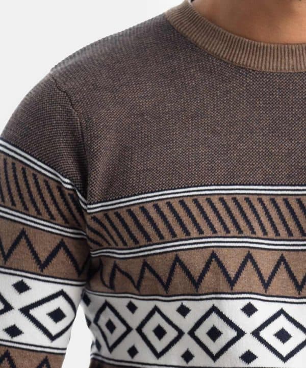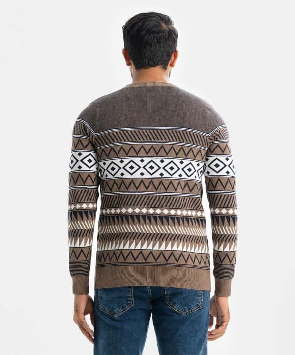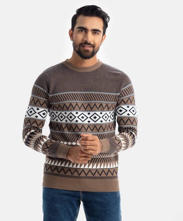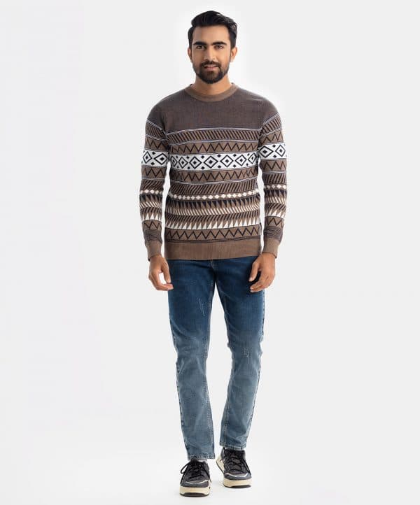 Men’s winter striped sweater in cotton knit fabric. Round neck, full sleeves and a straight hem.