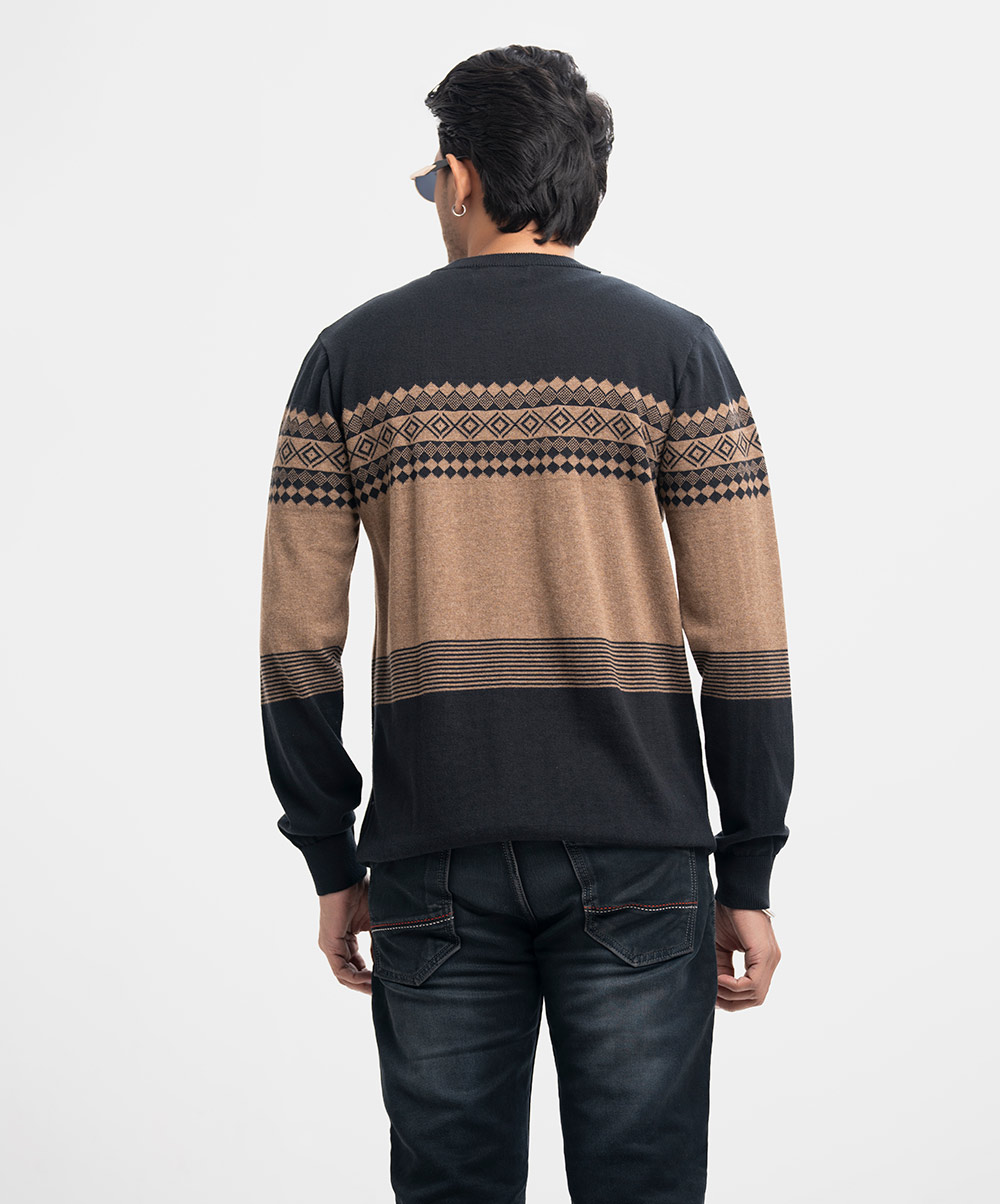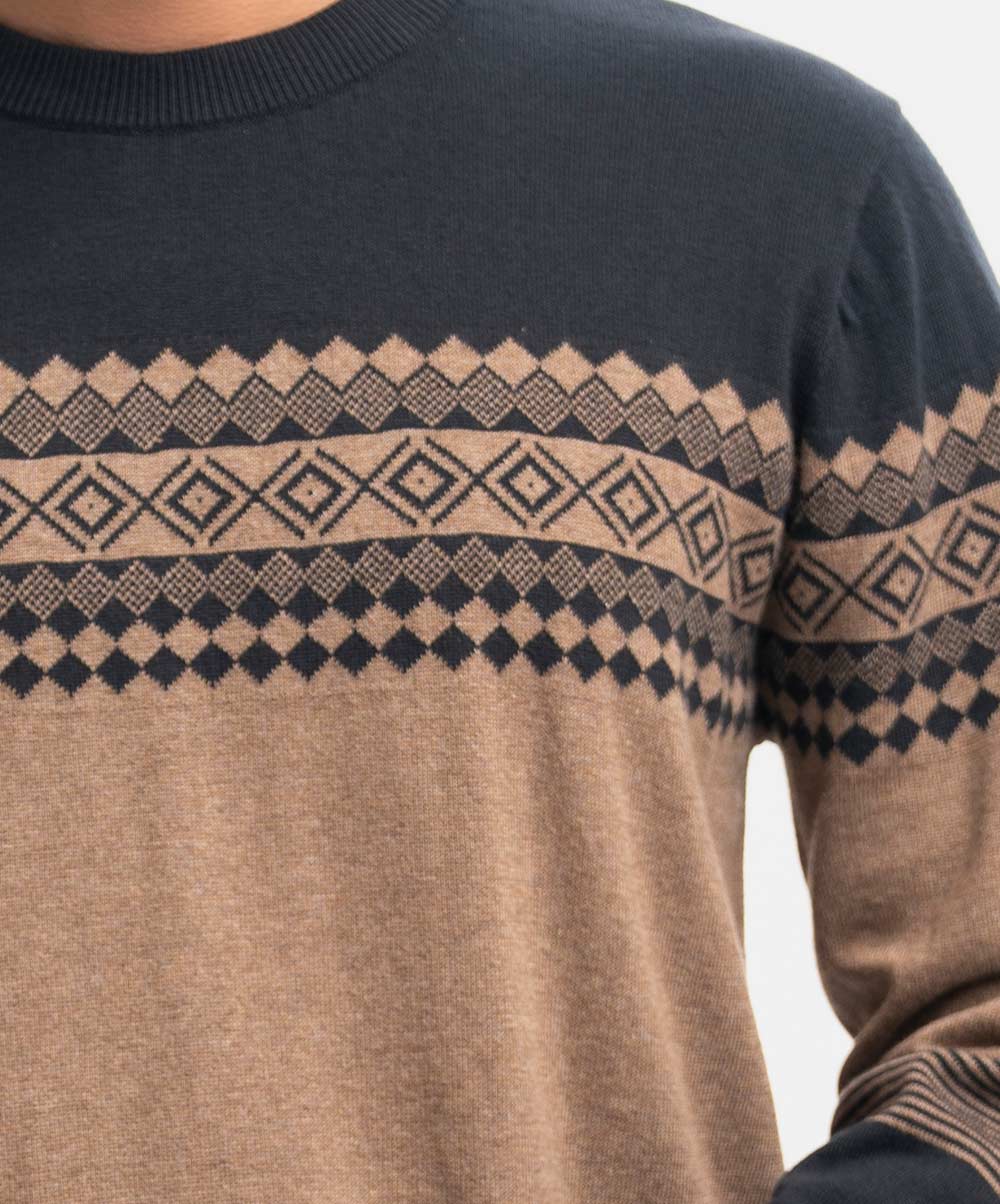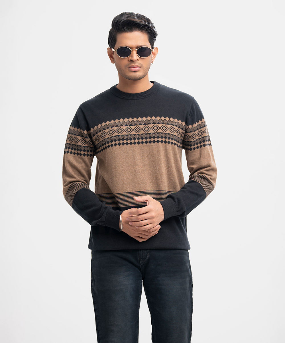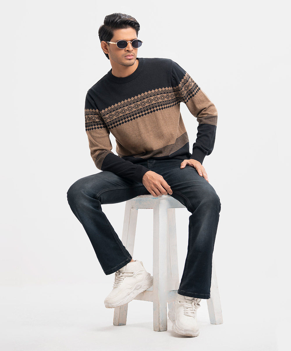 Men’s winter sweater in blended cotton knit fabric. Round collar, full sleeves, and a straight hem. Featuring narrow ribbing at the cuffs and hem.