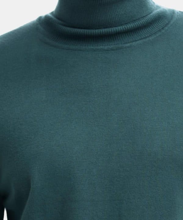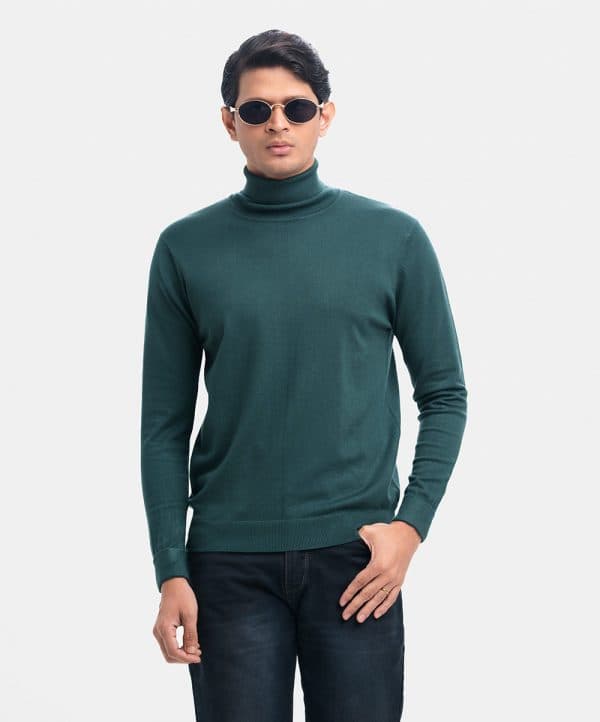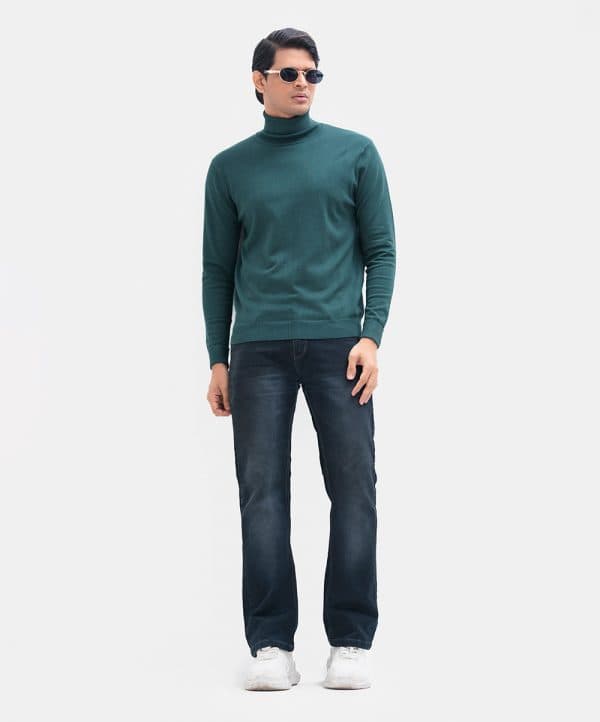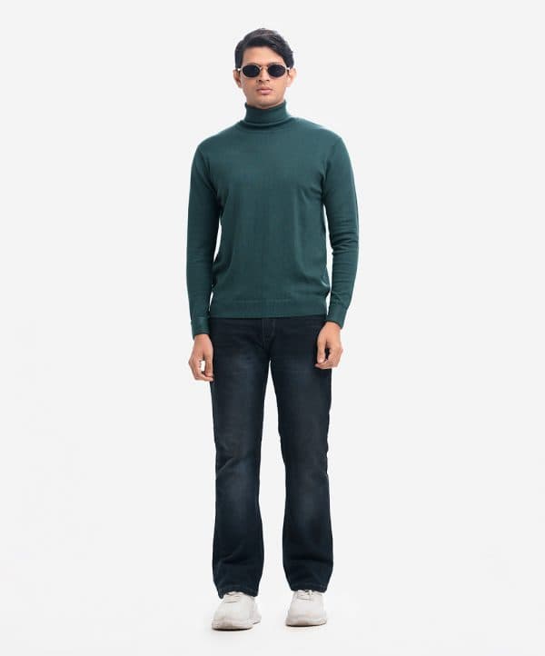 Men’s winter sweater in blended viscose knit fabric. Turtleneck, full sleeves with roll cuff and a straight hem. Featuring narrow ribbing at the cuffs and hem.