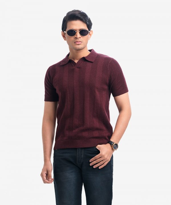 Burgundy Viscose Knit Short Sleeve Sweater Polo