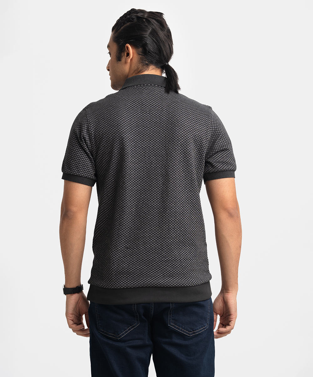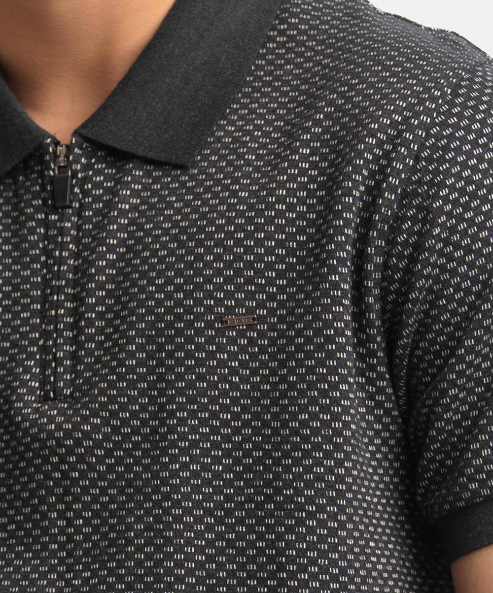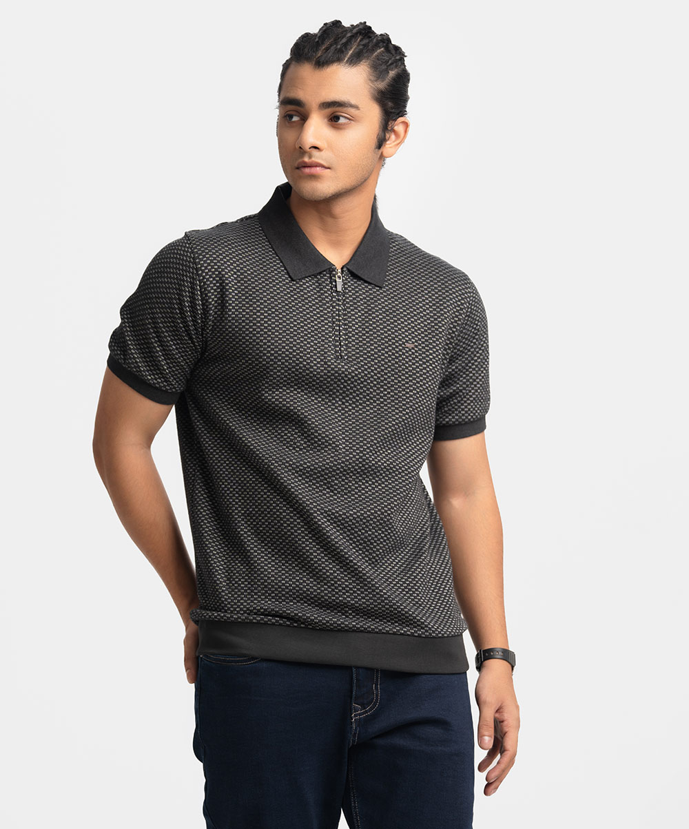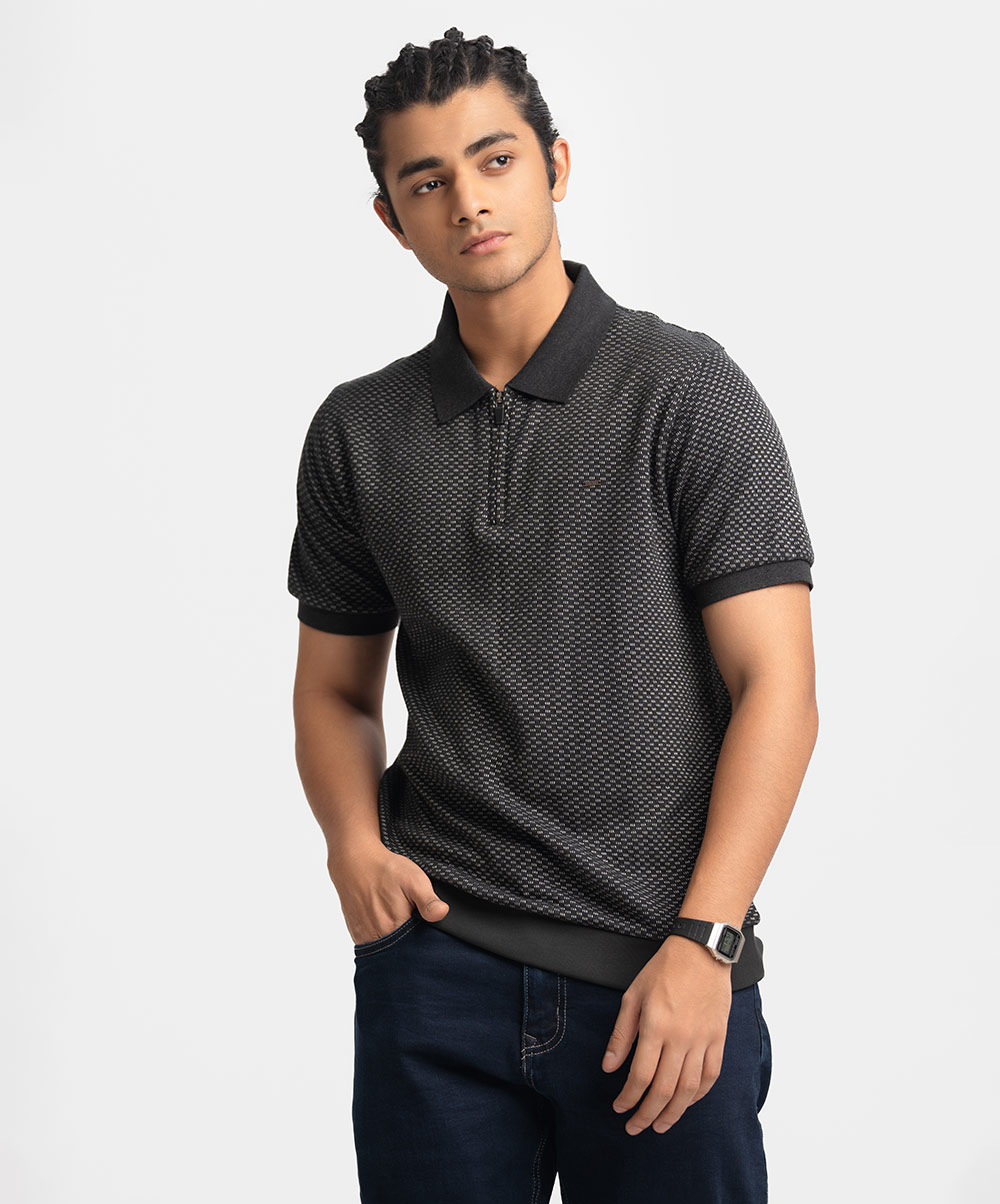 Men’s sweater polo in Interlock cotton knit fabric. Classic collar with half-zip placket, short sleeves.