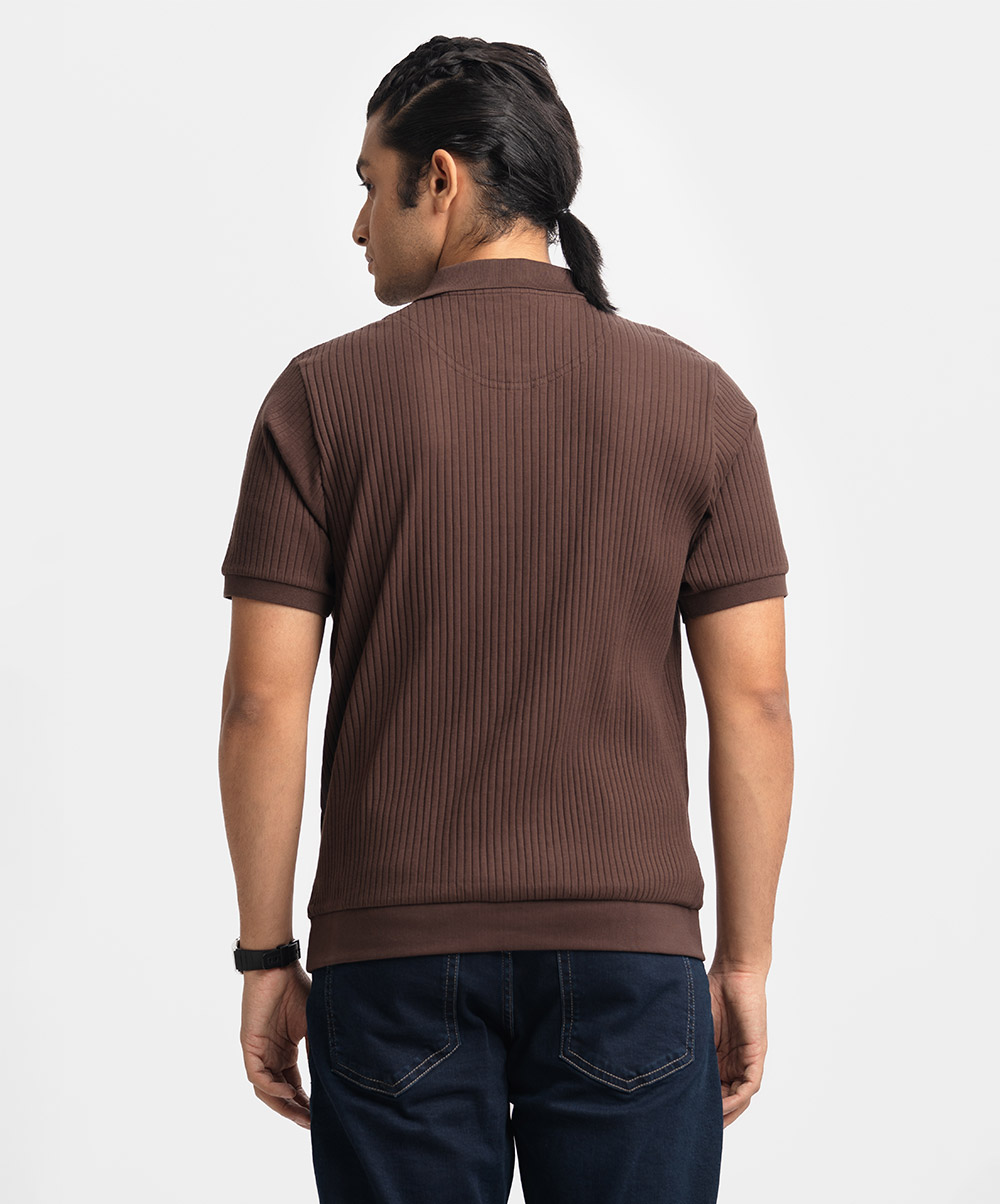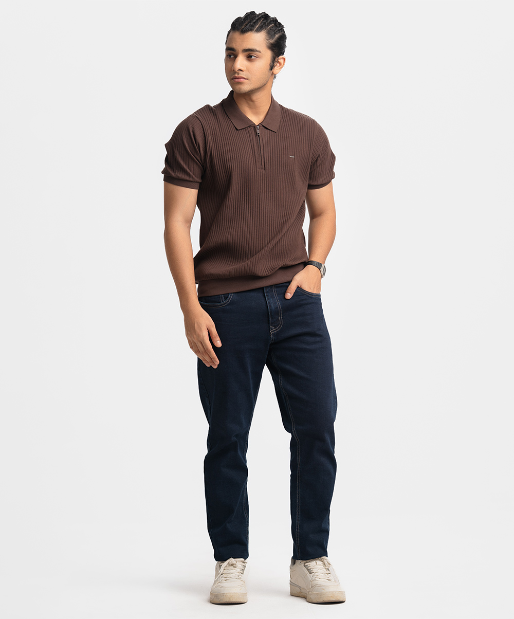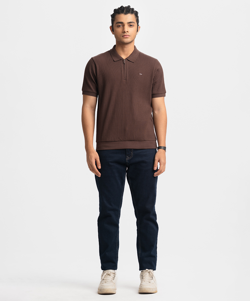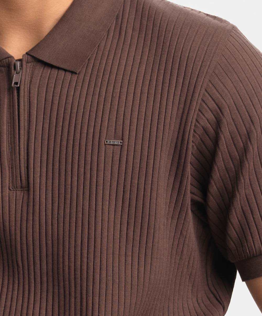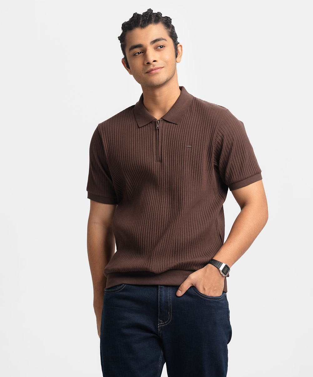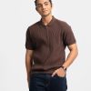 Men’s sweater polo in stretchable cotton-blend knit fabric. Classic collar with zip placket, short sleeves.
