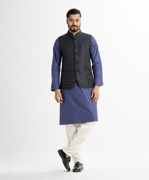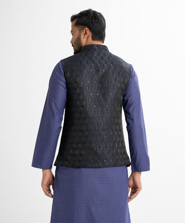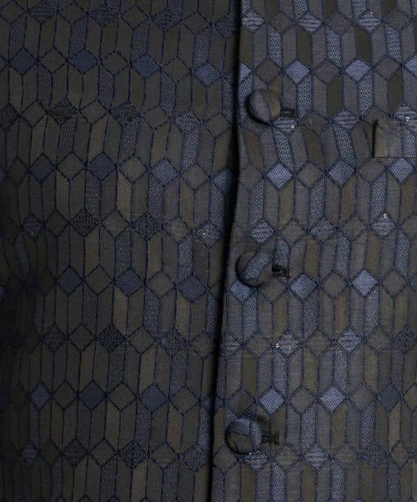 Men’s Waistcoat in Jacquard fabric. Mandarin collar, sleeveless, straight hem with button closure and three pockets at front.