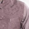Men’s Waistcoat in Jacquard fabric. Mandarin collar, sleeveless, straight hem with button closure and three pockets at front.