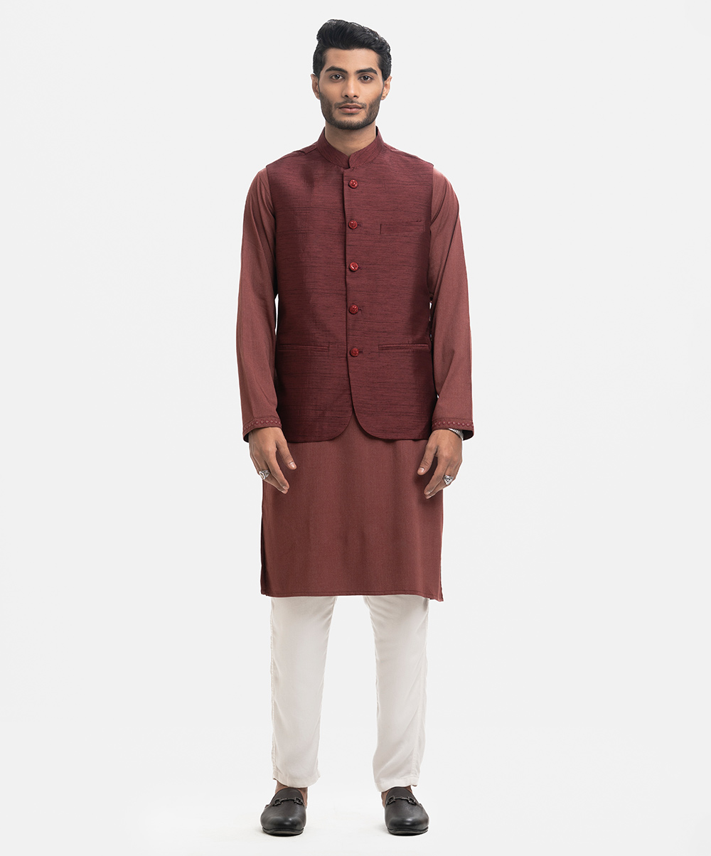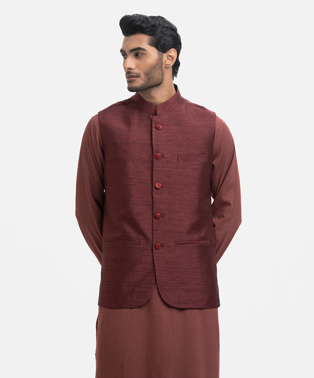 Maroon Jacquard Waistcoat