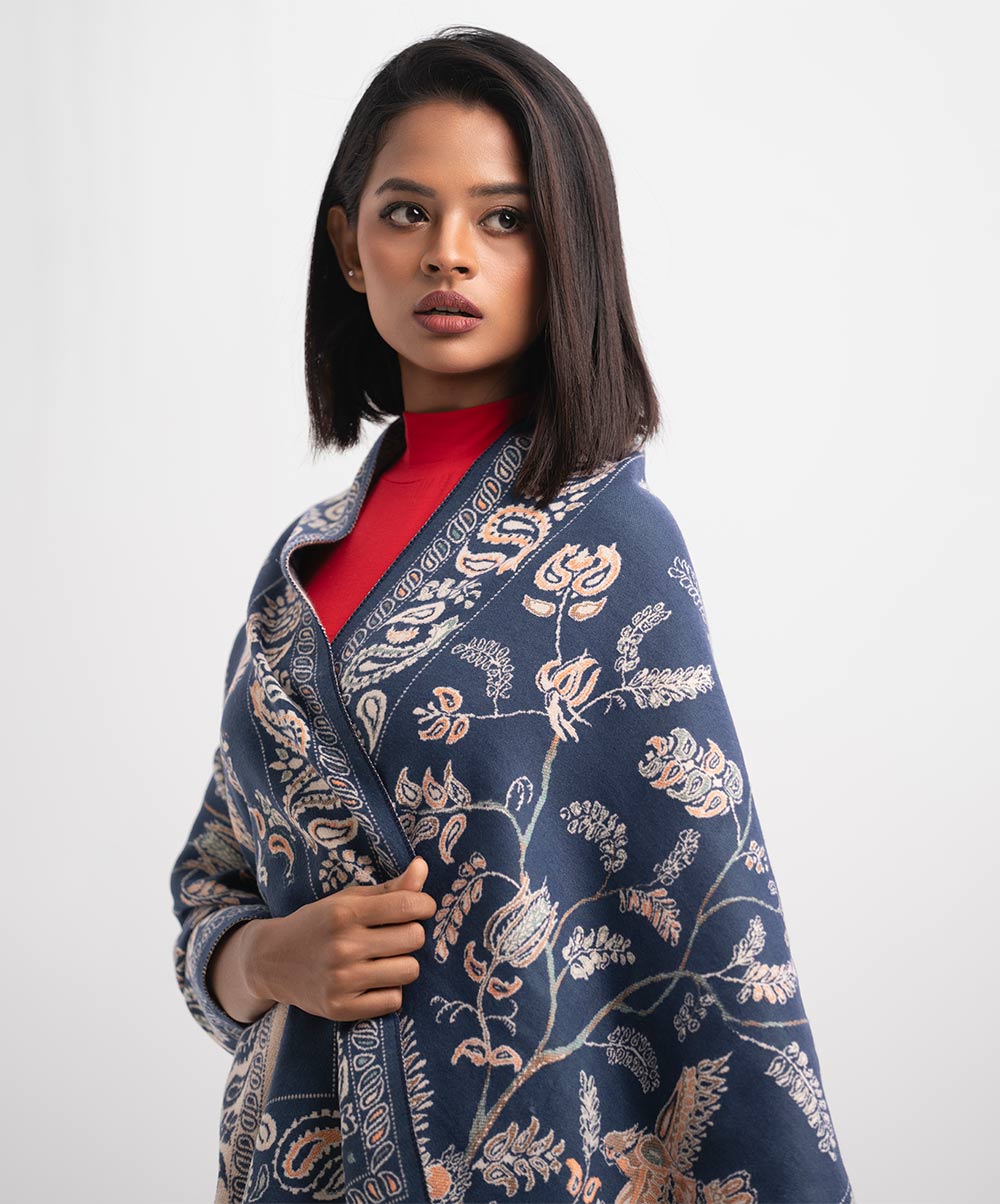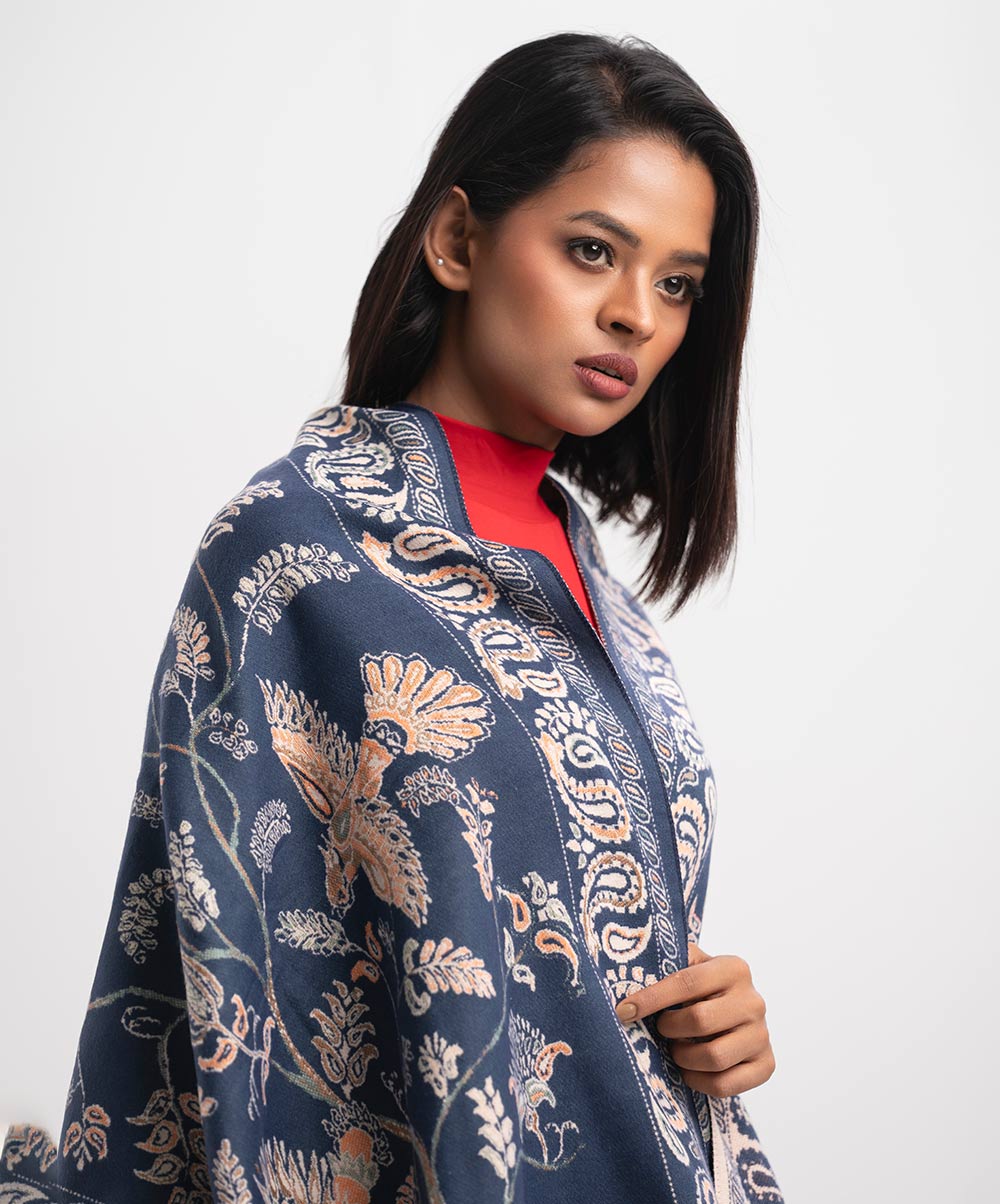 Navy Blue Woolen Shawl