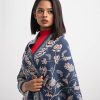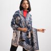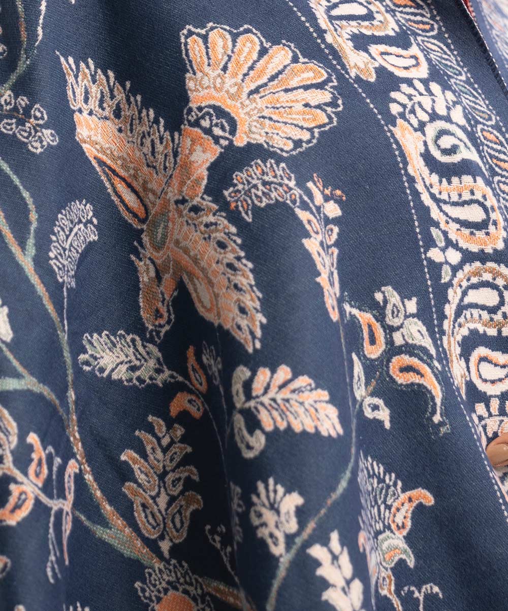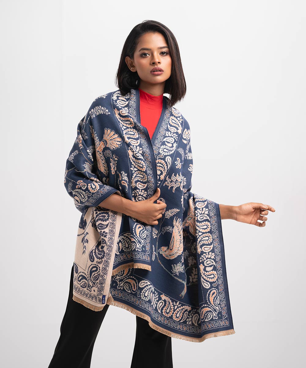 Women’s winter shawl in woolen fabric. All over woven paisley pattern.