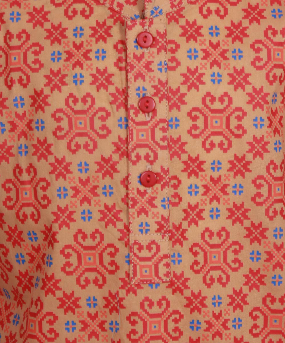 Newborn baby panjabi with allover print. Paired with white pant pajama.