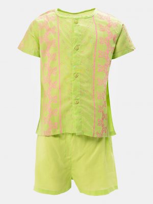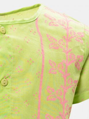 printed cotton fabric, contrast at inner collar and placket. twill tape at side seam.