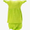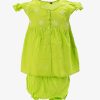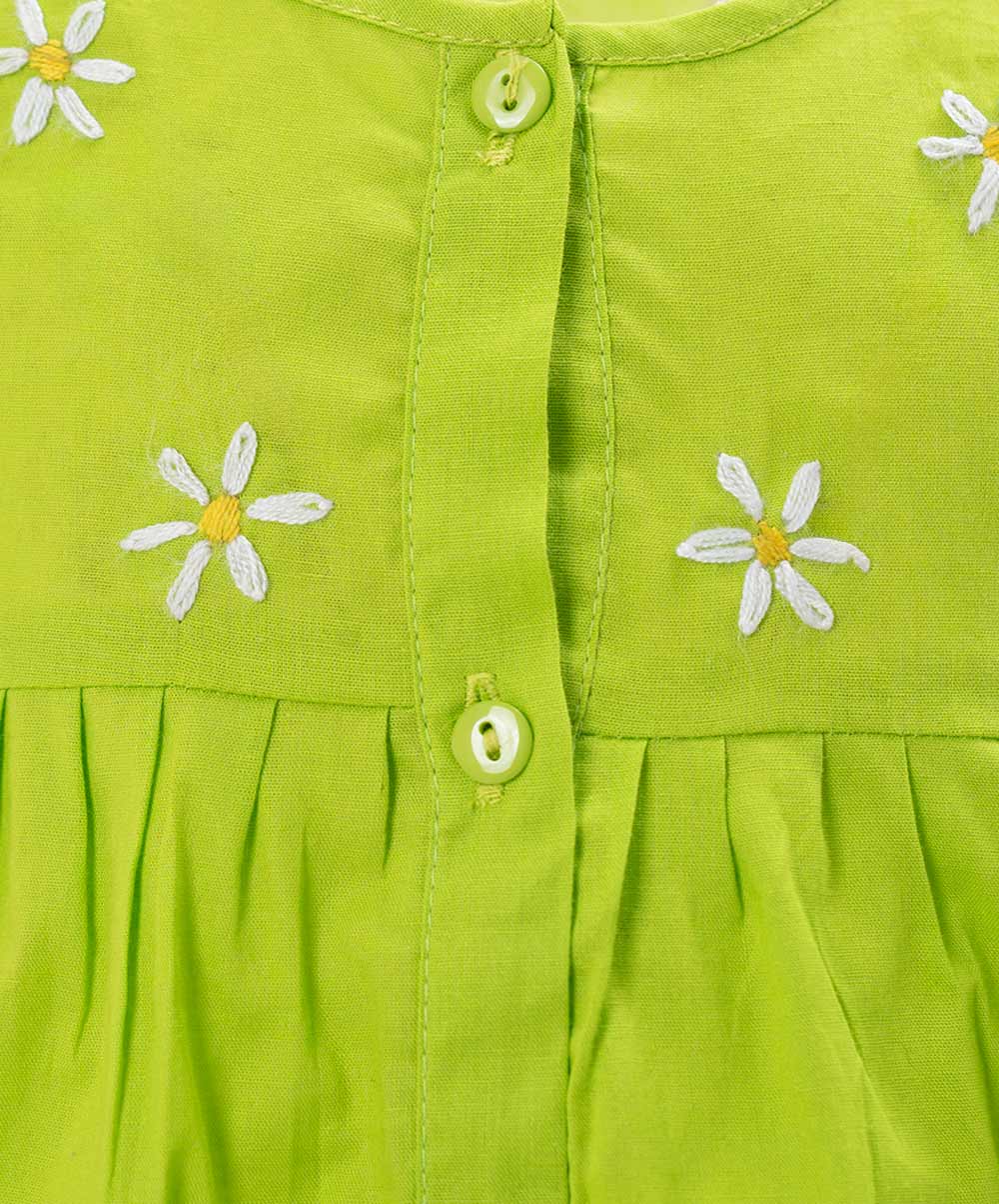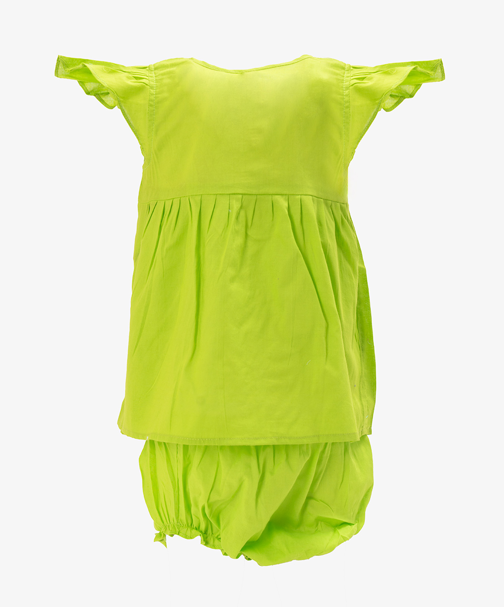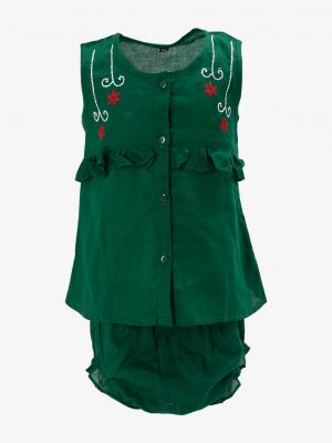 Newborn baby girls’ nima set in cotton fabric. Round neck, sleeveless. Karchupi and button fastening at the front. Paired with a baby pant.