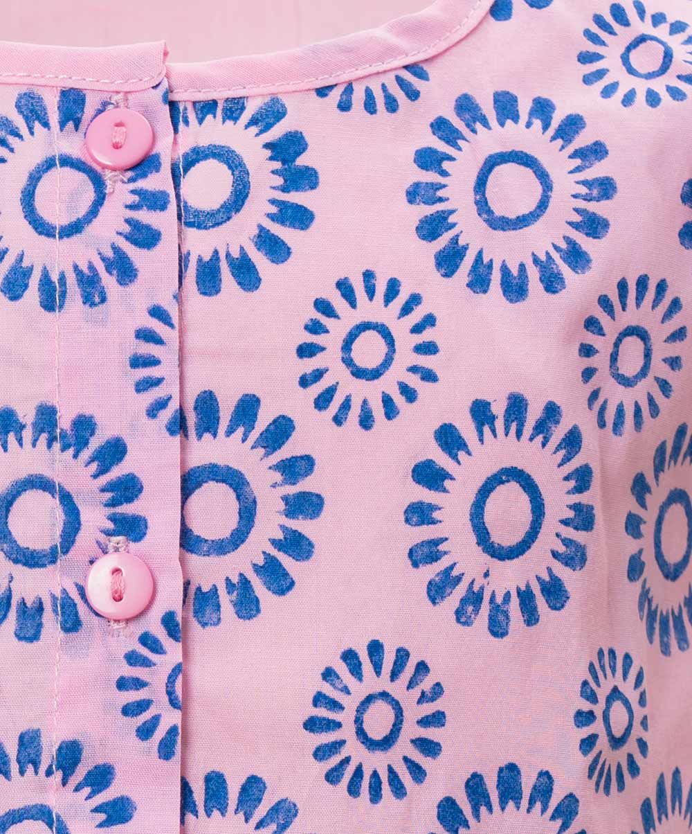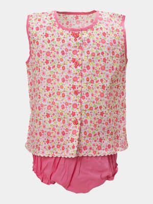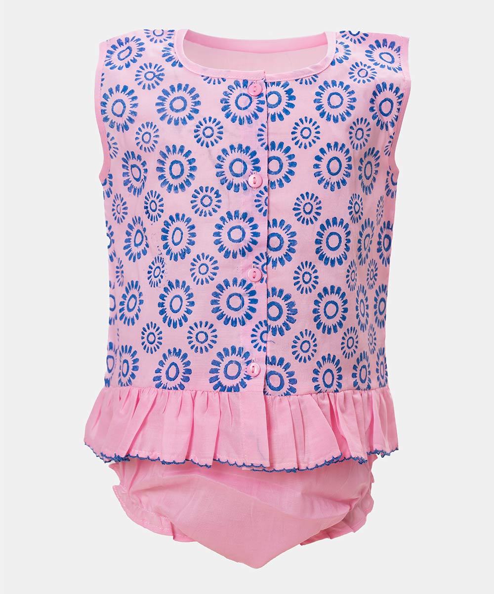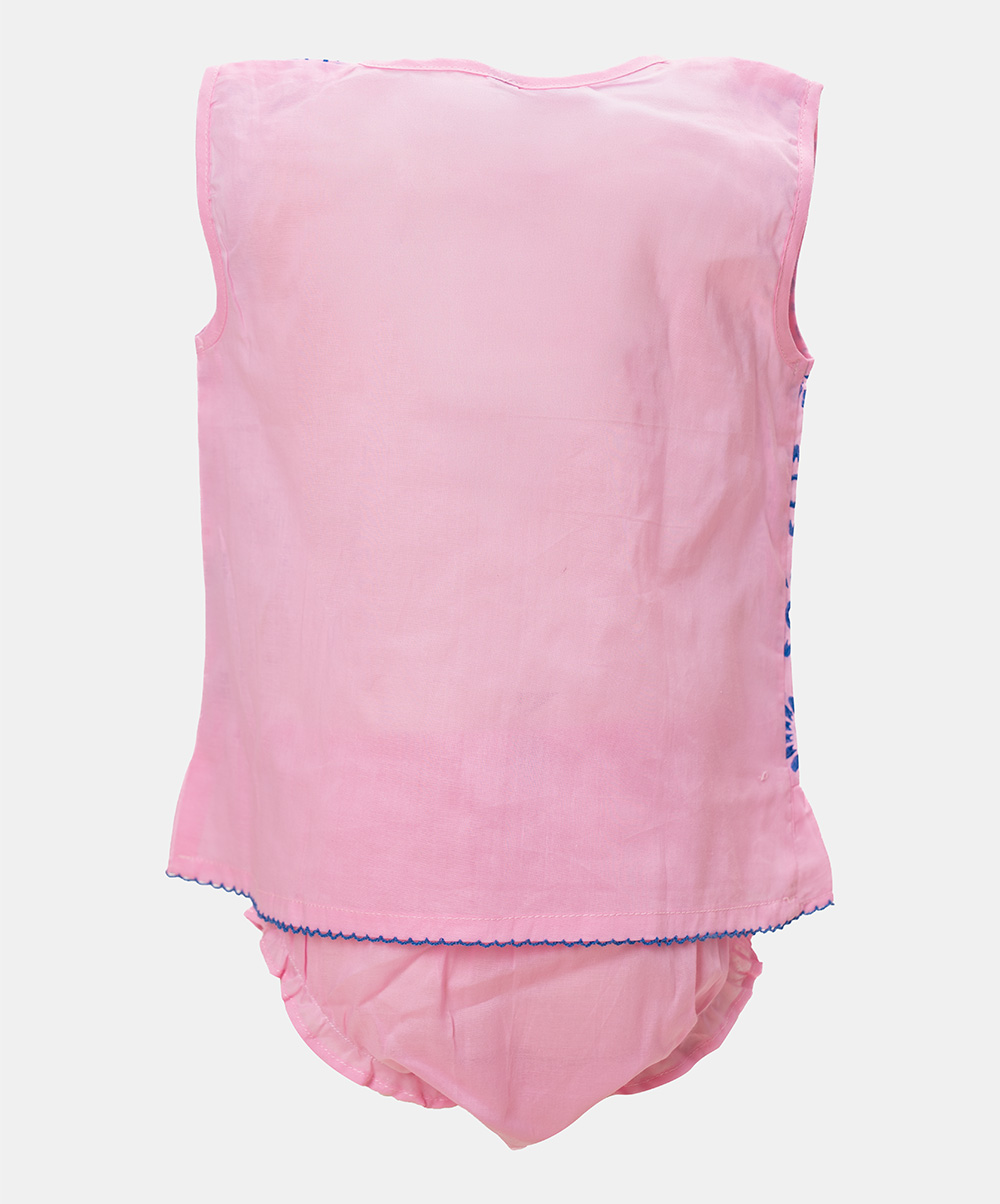 Newborn baby girls nima set in cotton fabric with short pant set. Round neck, sleeveless. Ruffle at hemline.