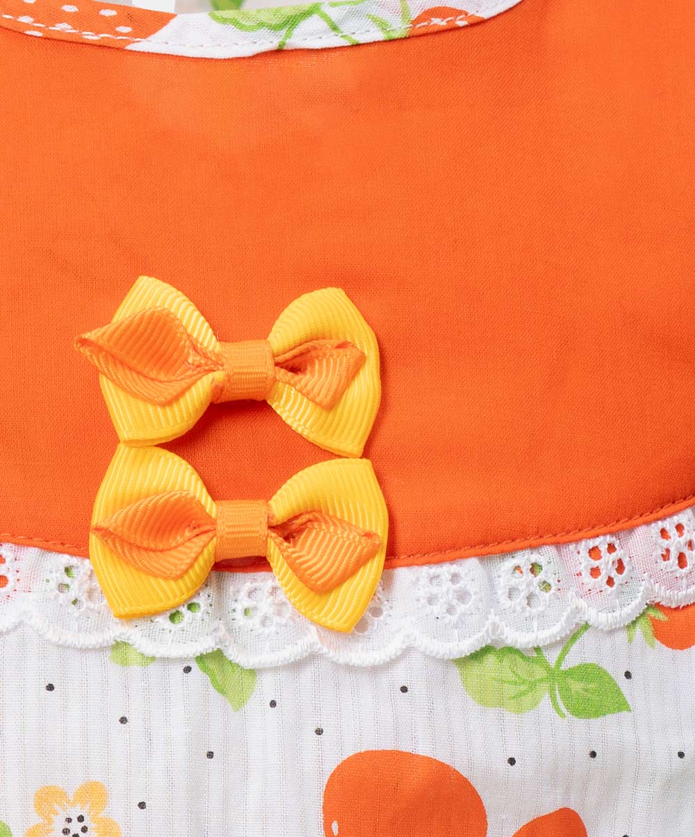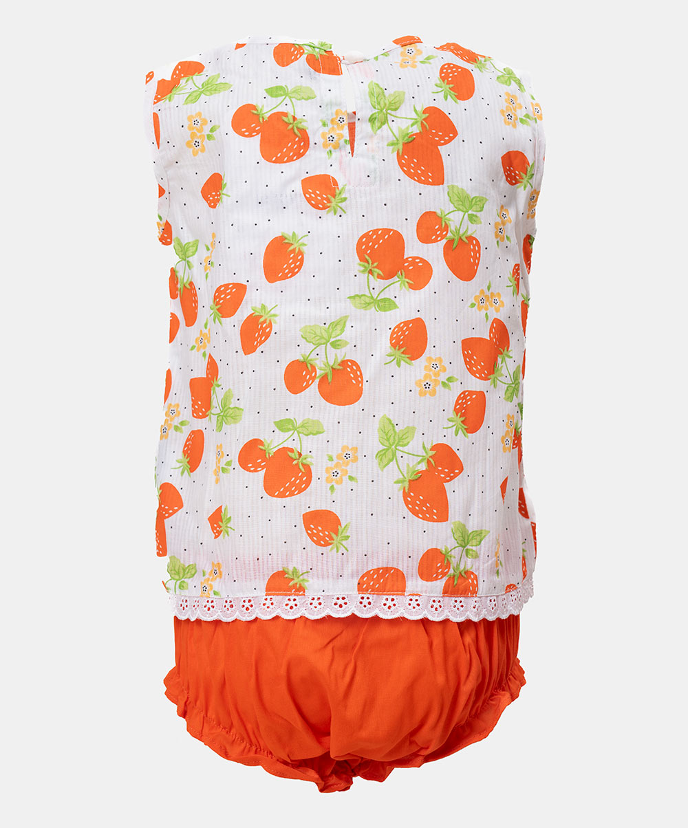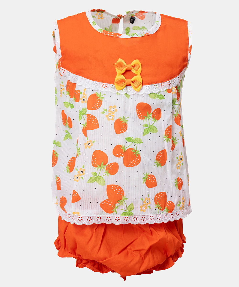 Newborn baby girls nima set in cotton fabric with short pant set. Round neck, sleeveless. Bow attached and lace at the front.