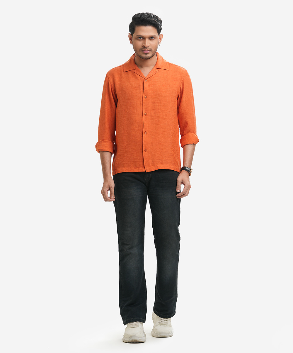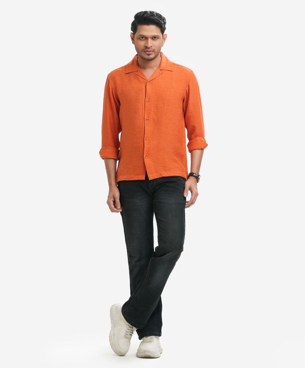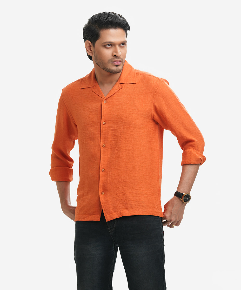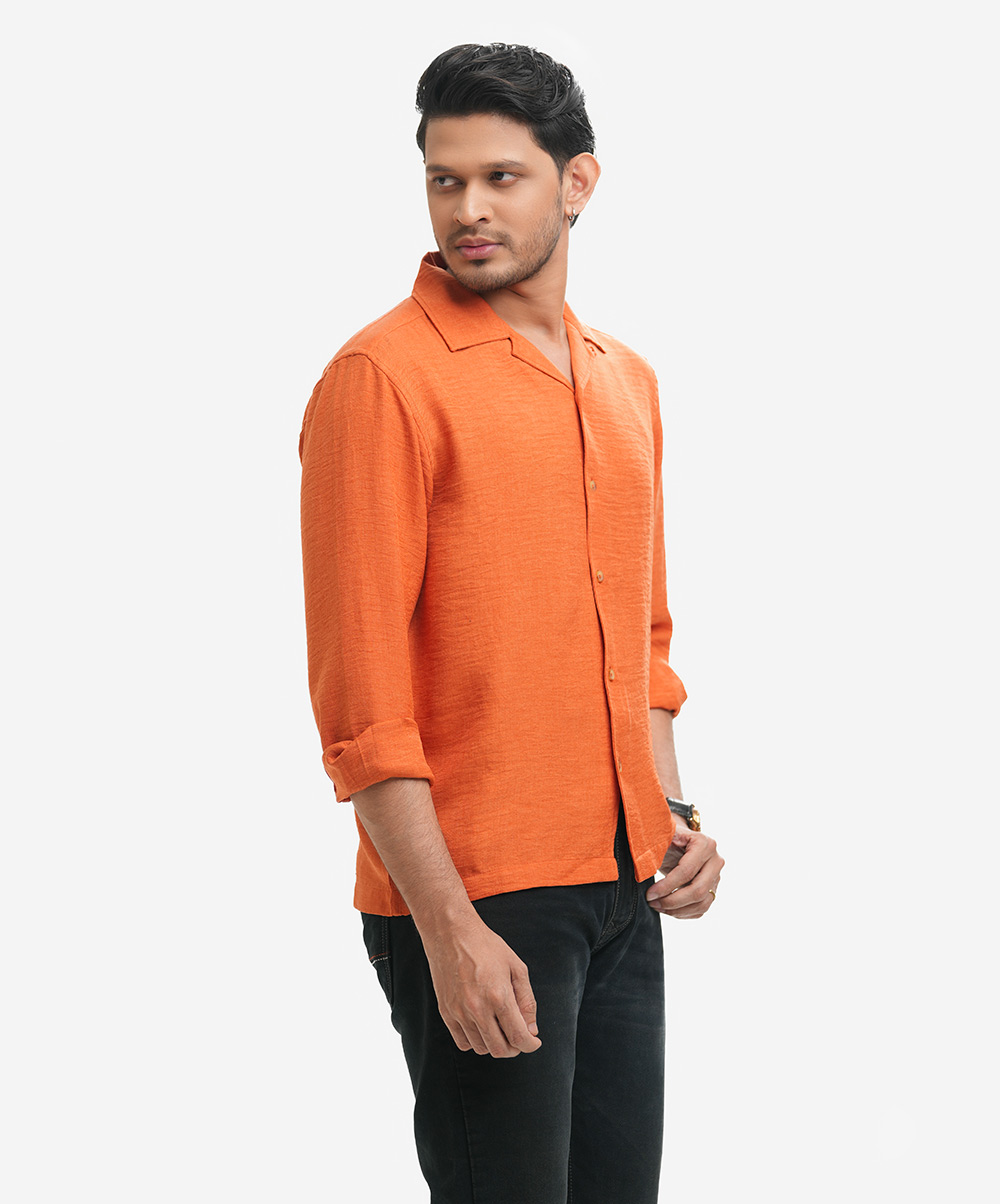 Orange Cotton-blend Cuban Collar Shirt