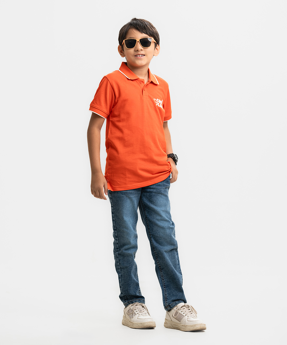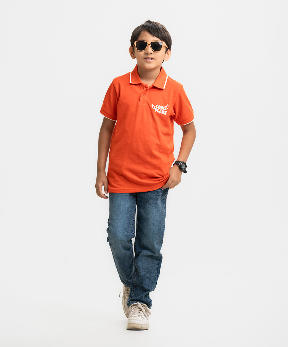 Orange Pique Short Sleeve Polo