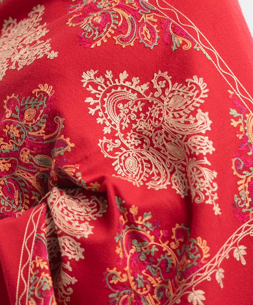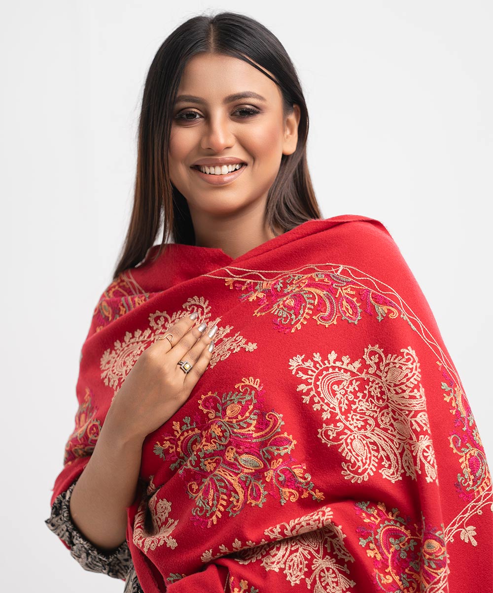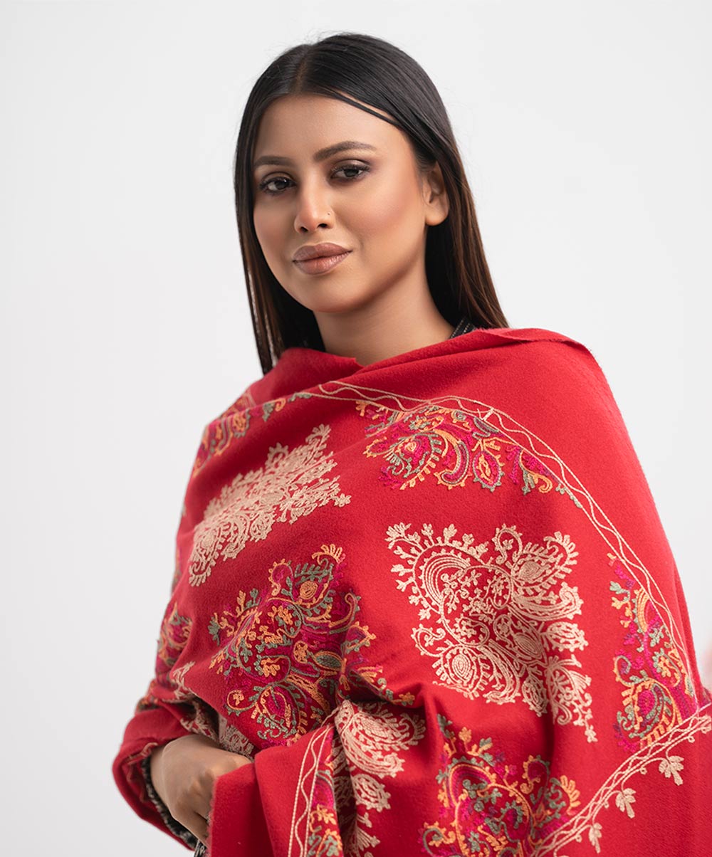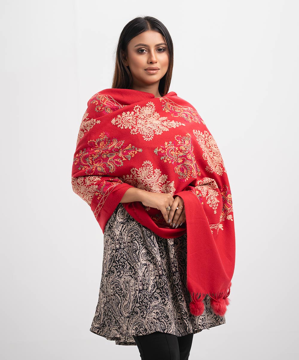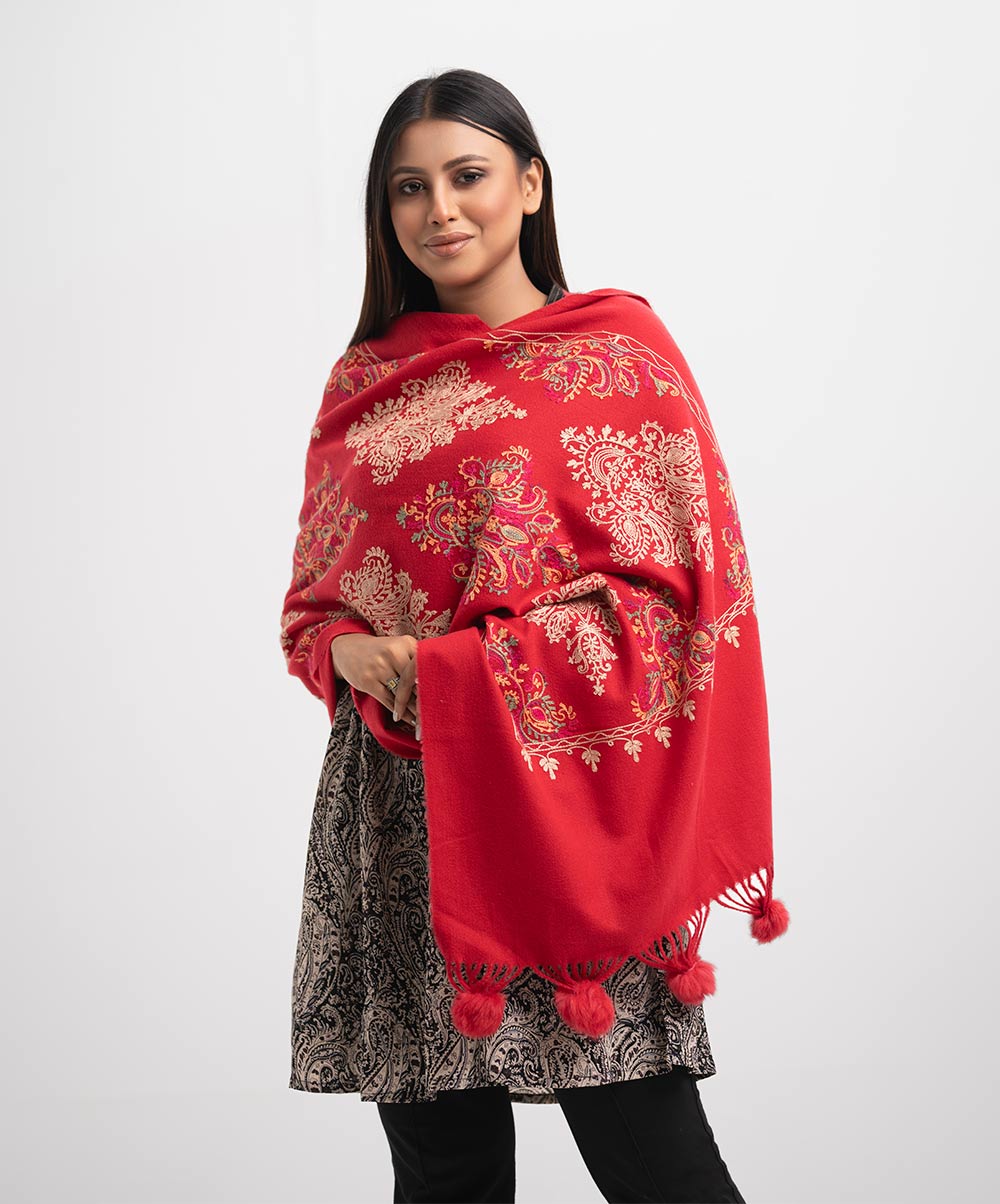 Red Woolen Embroidered Shawl