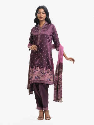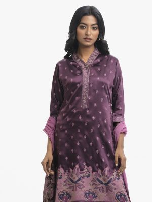 Green Sharara style Salwar Kameez in Crepe Silk with V-neck & three-quarter sleeves. All-over printed with embroidery.