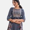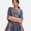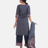 Women’s printed semi-long salwar kameez in crepe fabric. Boat neck, three-quarter sleeves. Embroidery at the front. Cotton dupatta with crepe palazzo pants.
