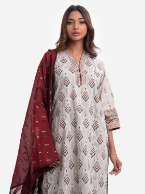 Women printed A-line salwar kameez in georgette fabric. Stand collar, bishop sleeved. Karchupi at the front and box pleated at the waistline. Complemented with viscose pant pajama and half-silk dupatta.