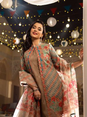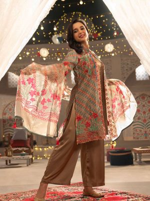 Brown Silk & Viscose Blended Gown with Muslin Shrug