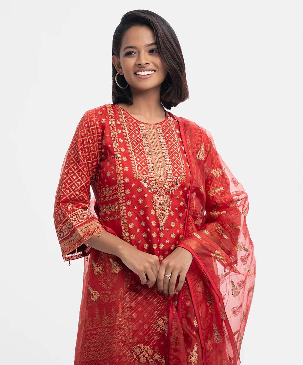 Red Muslin Exclusive Salwar Kameez