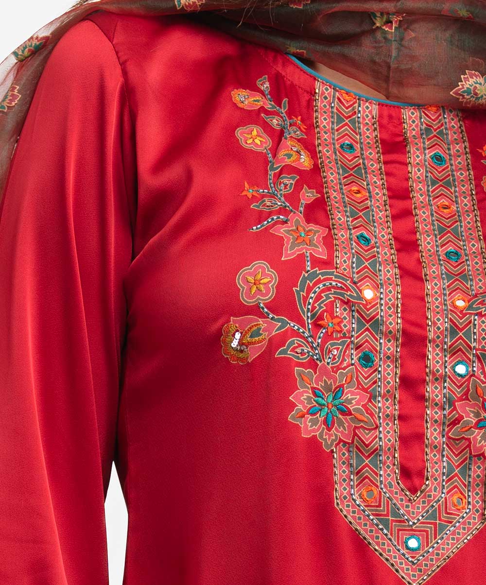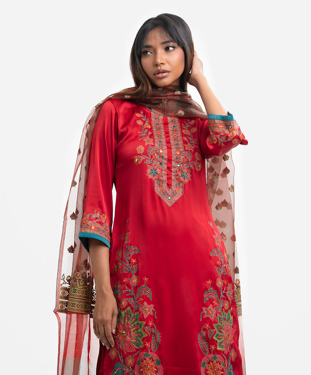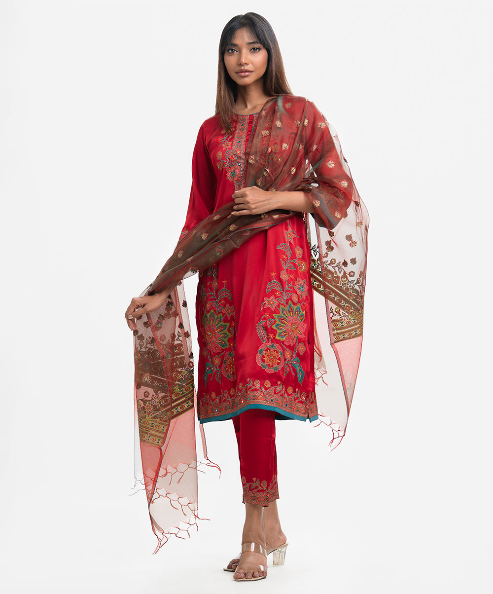 Red Blended Karchupi Salwar Kameez
