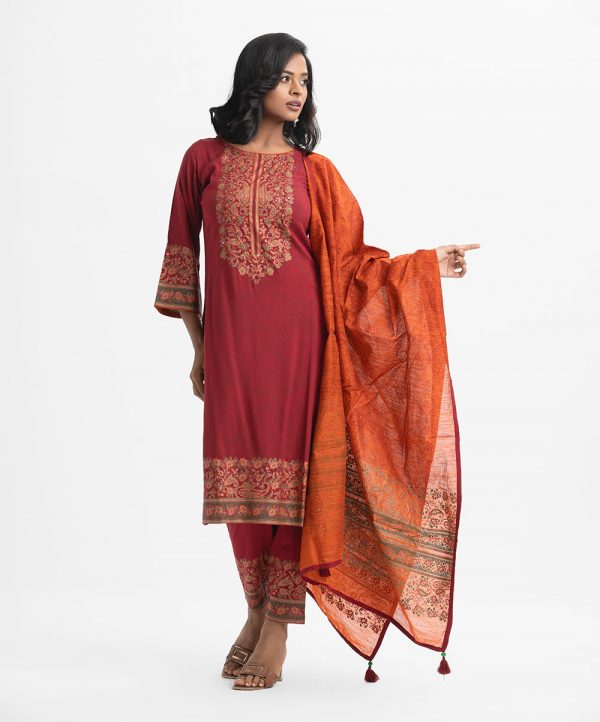 Women’s printed straight salwar kameez in viscose fabric.