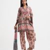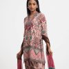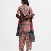 All over printed Salwar Kameez in blended cotton fabric. V-neck, three-quarter sleeves and karchupi at the front of kameez. Chiffon dupatta with wide hem classic pajama.