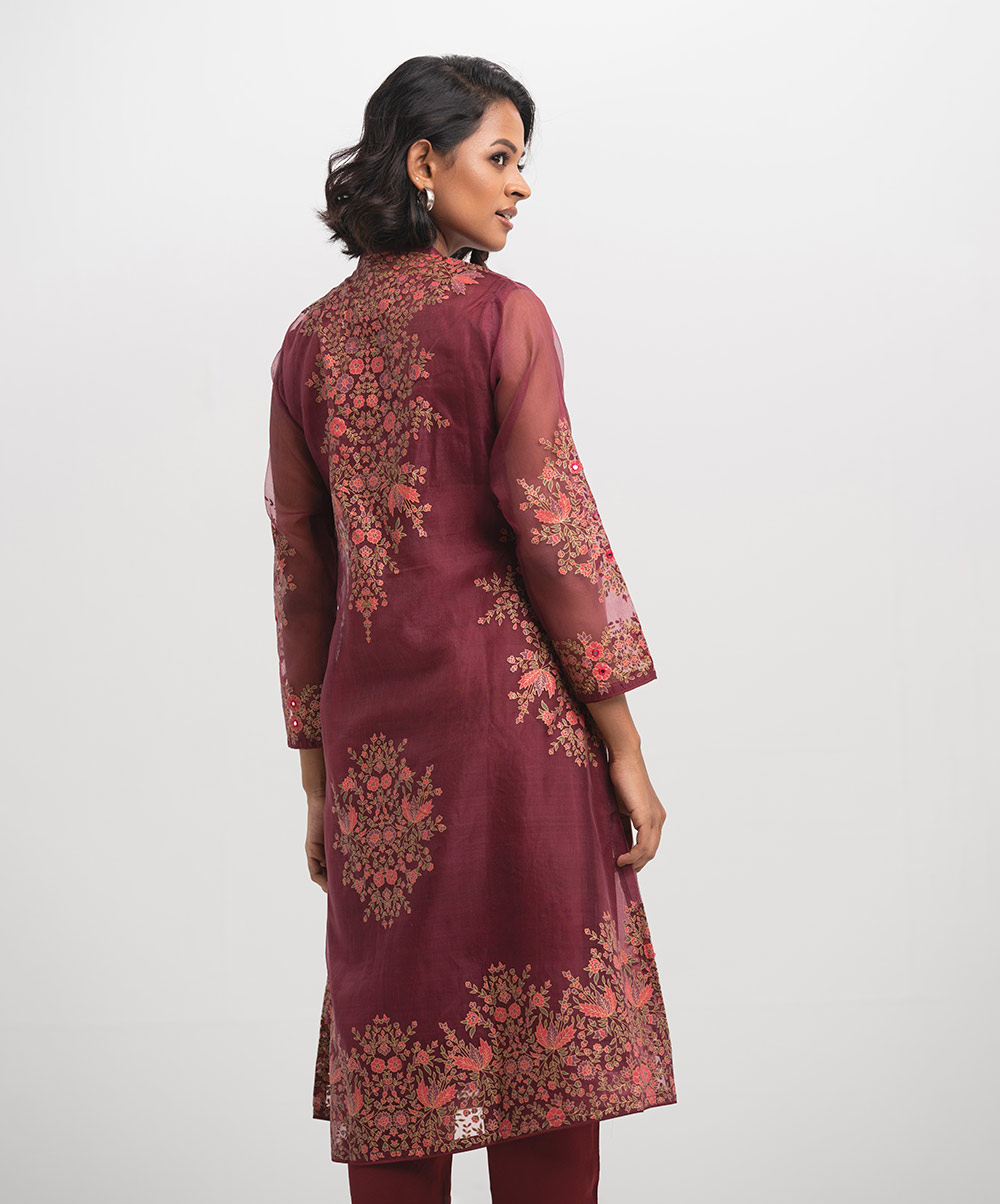 Burgundy Muslin Straight Salwar Kameez