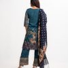 Teal Cotton-blend Straight Salwar Kameez