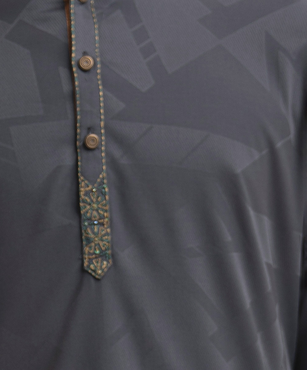 Ash Blue Cotton Jacquard Panjabi