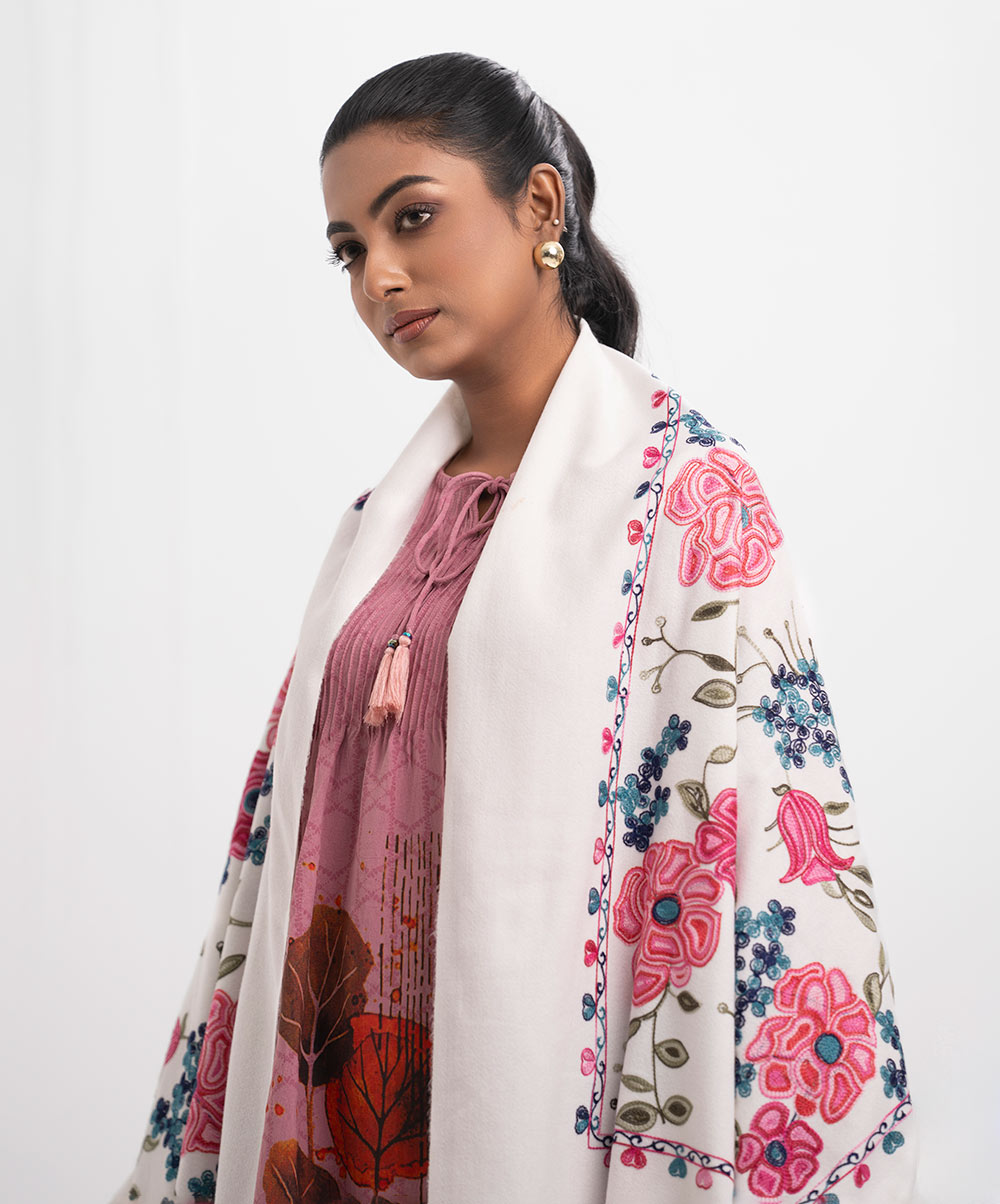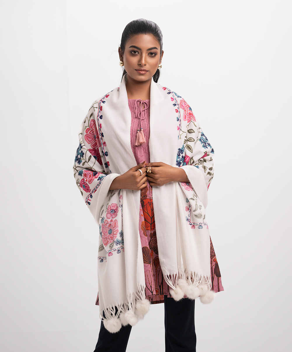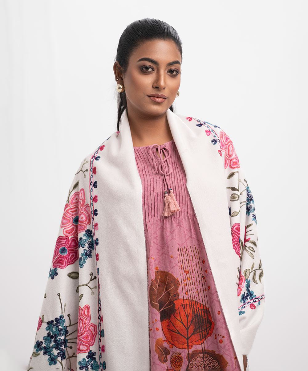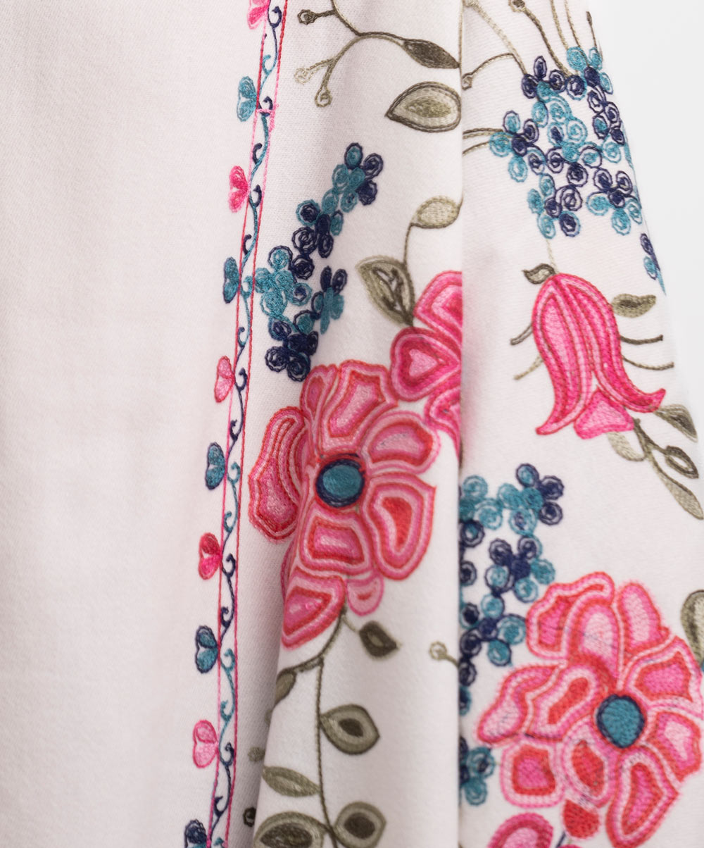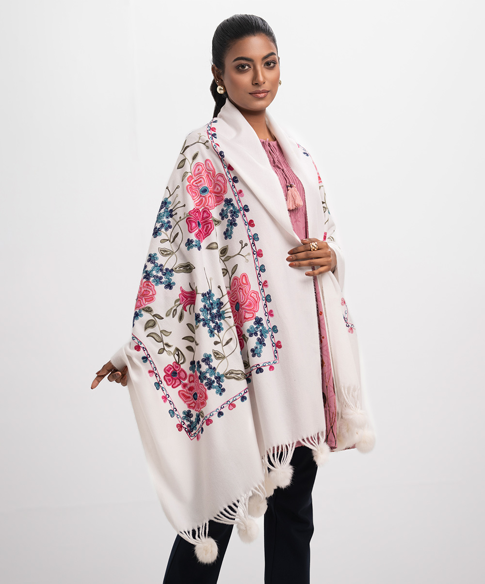 White Woolen Embroidered Shawl